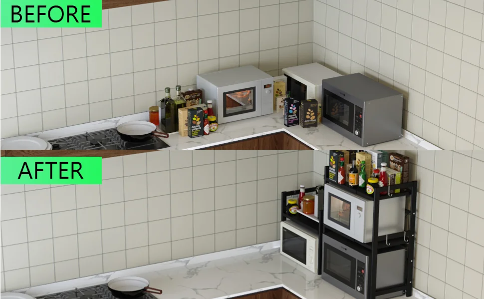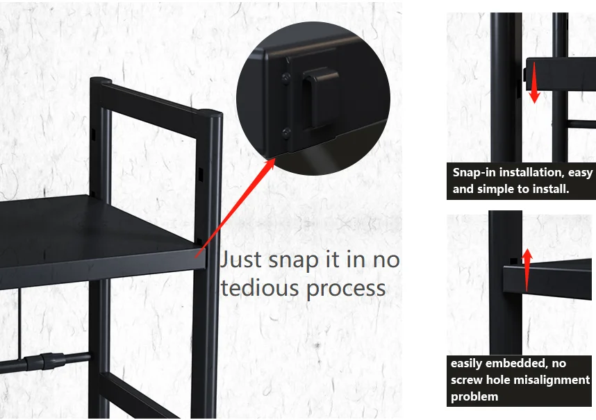 Suitable for your kitchen, office, wardrobe, garage, warehouse, shower room and other storage areas. The 6 detachable hooks included can be used to store oven gloves, kitchen utensils or hand towels. The protective railing on the side helps prevent your belongings from falling.