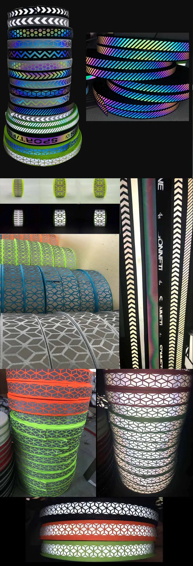 Production name | high light reflective sewn on fabric tape /webbing tape / reflective heat transfer film tape. |