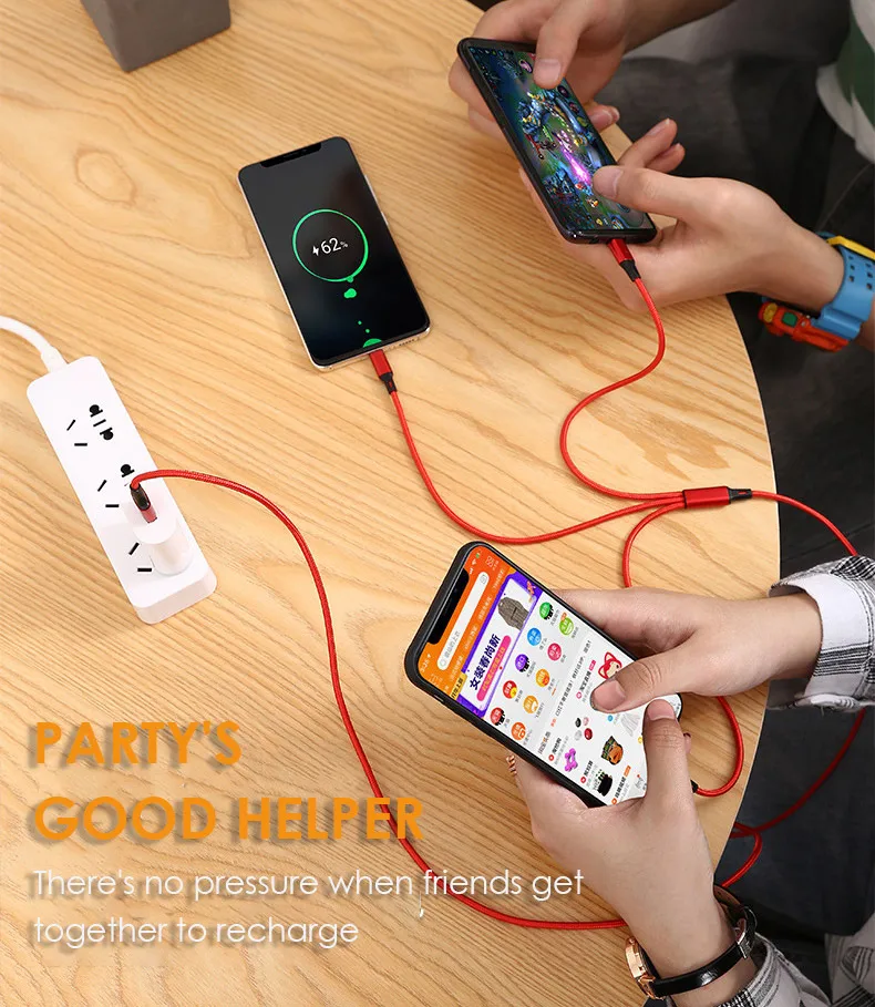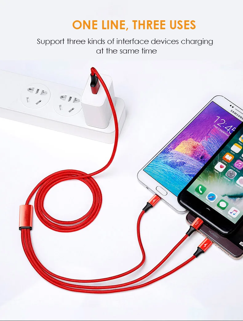 Portable and Convenient | The 3 way charger cord is 1.2m long, which makes it suitable for many applications, such as, put this cable in your car, Lie on the sofa or bed and play with the phone while charging the phones, Share it with your family when you are watching th TV and so on. One cable is enough when you are traveling |