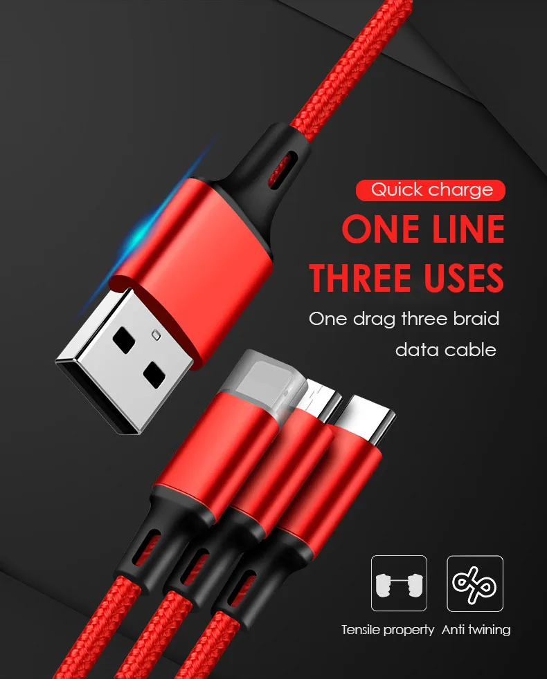 Super Quality Materials | This 3 way charger cable is made of nylon braided with aluminum connector, which provides premium durable flexibility and prevents from breaking or damage, that means this multi cable can ensure you with a longer service life. |
