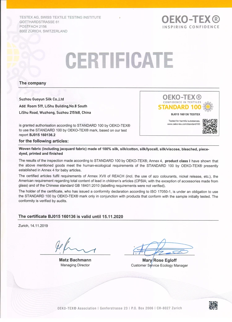 Suzhou Guoyun Silk Factory which has been well established since 2000, who is especially experienced in manufacturing complicated silk fabric , scarves, garments....We gear market position toward high quality at a reasonable price for the buyers.