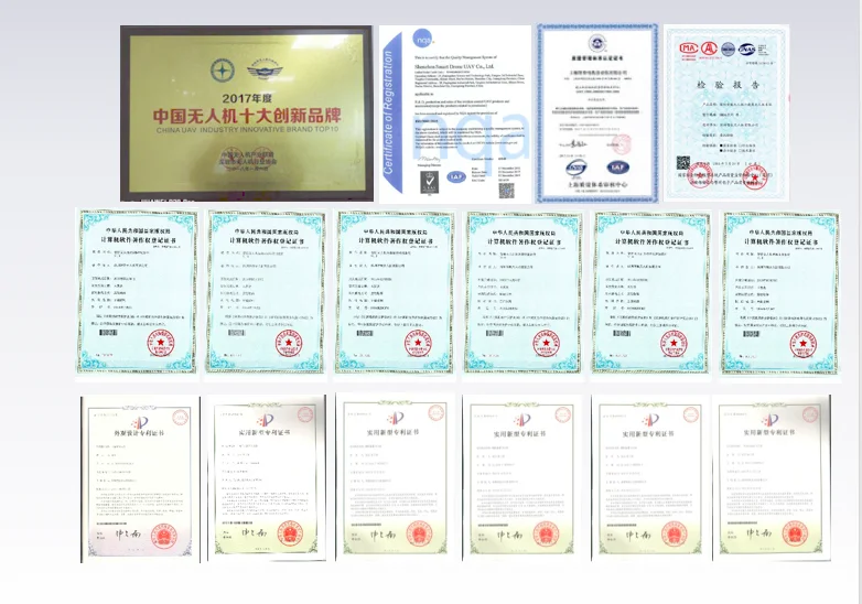 Safety design | Automatic return when signal interruption of remote control, low battery alarm, automatic crash landing, autonomous hovering, route planning, function of nose-in hover locking | |