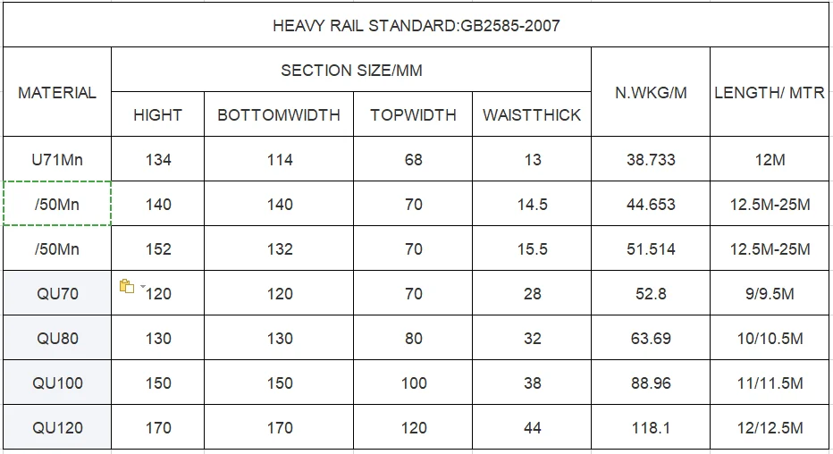 Crane rails provide a continuous, smooth and low-resistance rolling surface for the crane wheels. It is employed to guide the wheels of the crane, bear the pressure of the wheel, and transmit it to the sleeper and ground.
