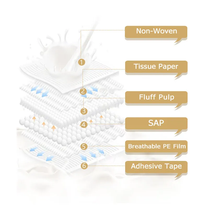 Material | non-woven fabric , tissue paper, fluff pulp , SAP, PE film , release paper |
