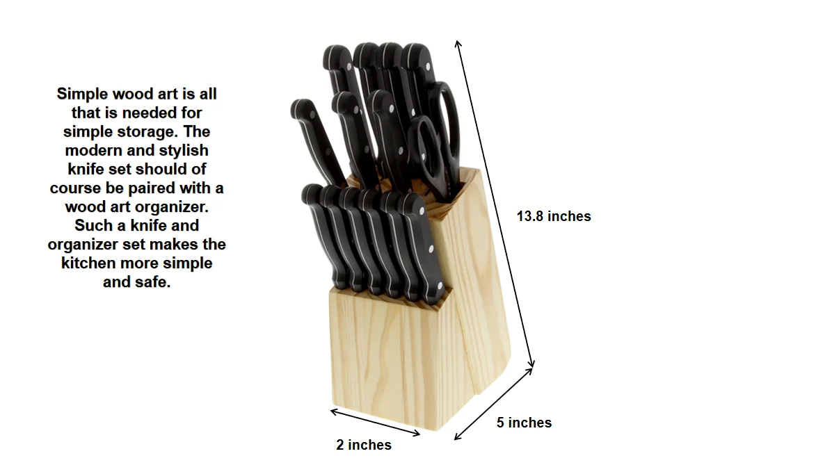 Material of wooden knife holder | In most cases, we use pine wood, but if there is a demand, we can use the wood specified by the customer. |