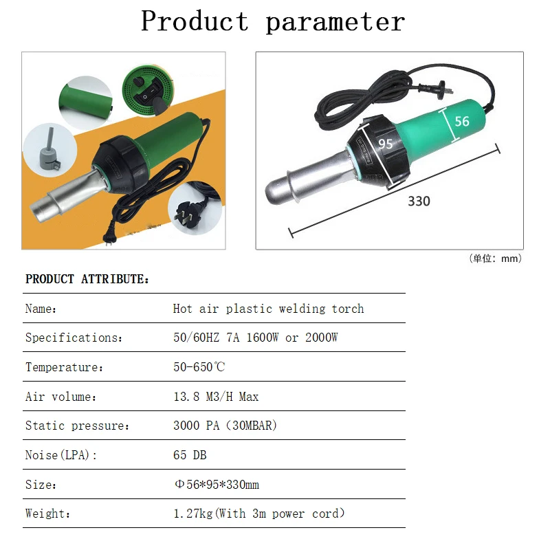Material:Heat Gun body:Plastic+ stainless steel