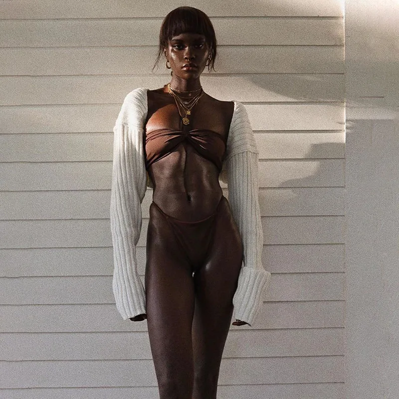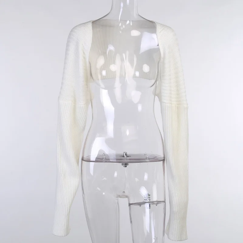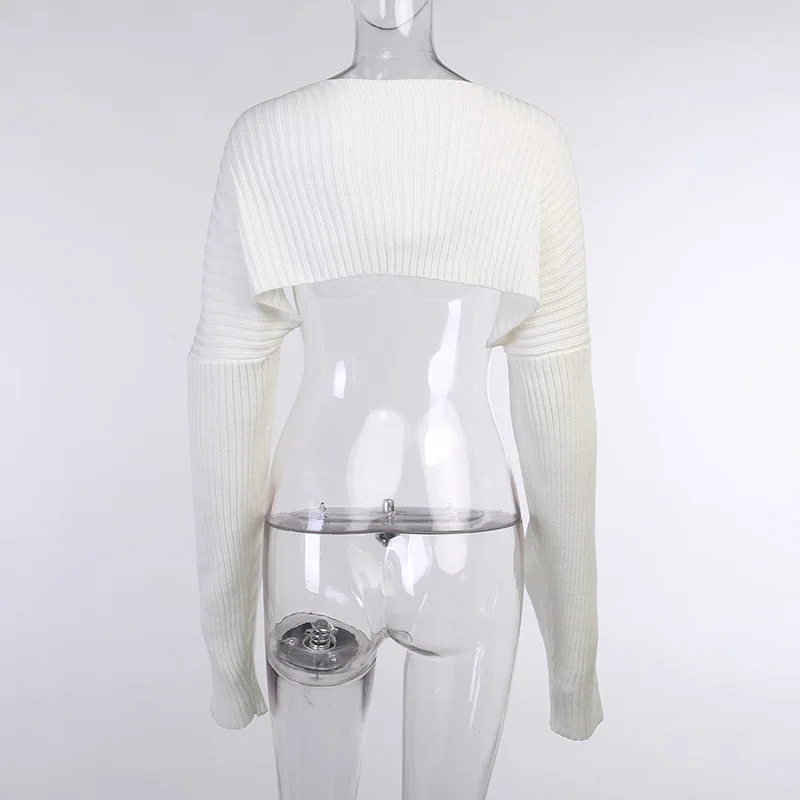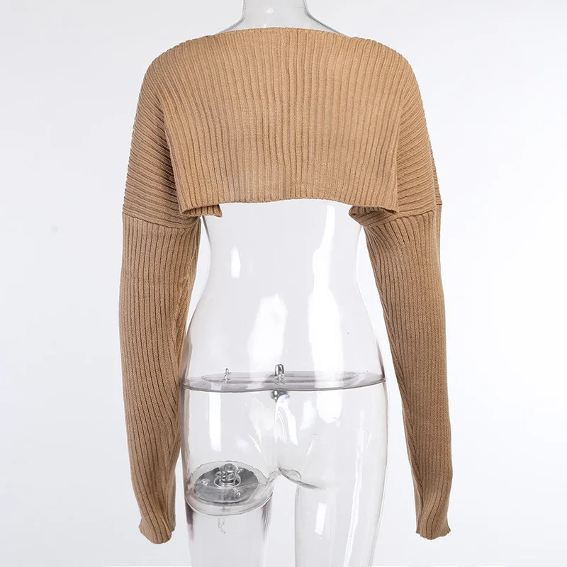 Осень 2020 Новинка шерстяной топ 20425p пикантный Однотонный свитер с ультракоротким длинным рукавом