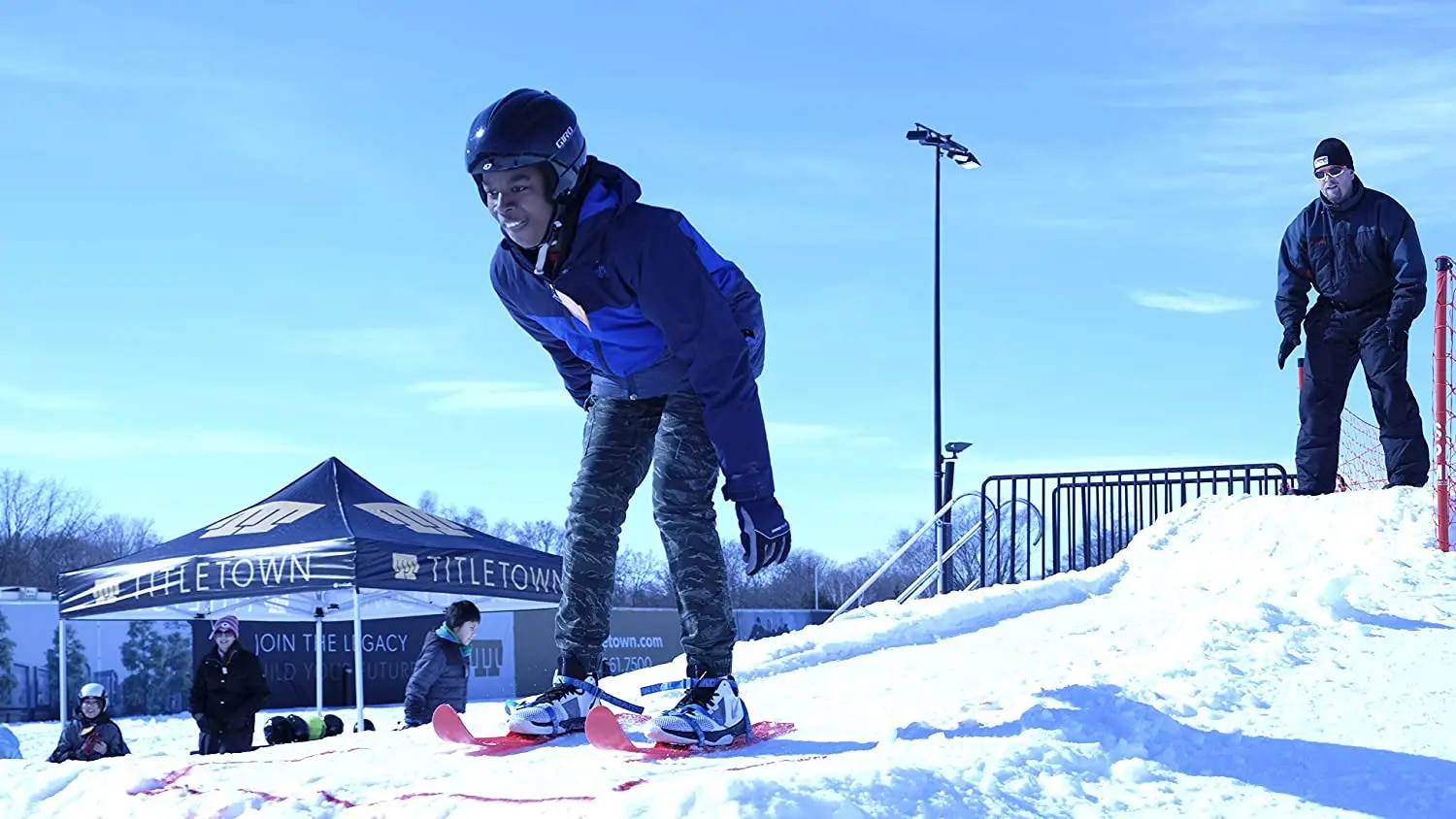 This snowboard has step-in bindings that are adjustable for people of all ages. Light weight, Reinforced Precision Injection Molded Bindings, Adjustable High back, Taught Ankle Strap, Toe Cap strap, Aluminum alloy Buckling mechanism.