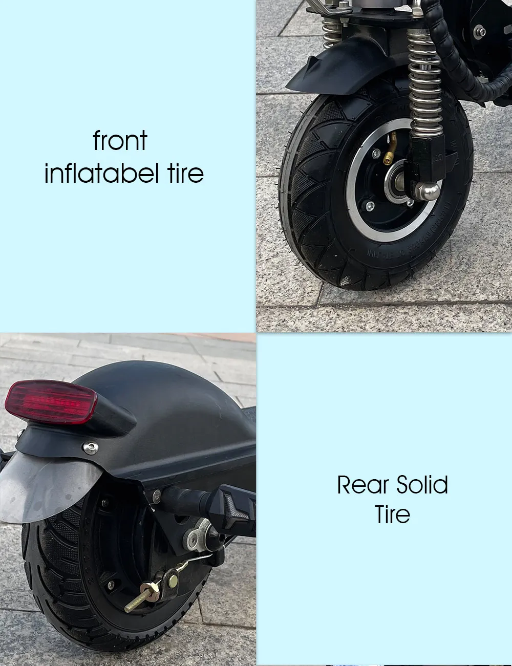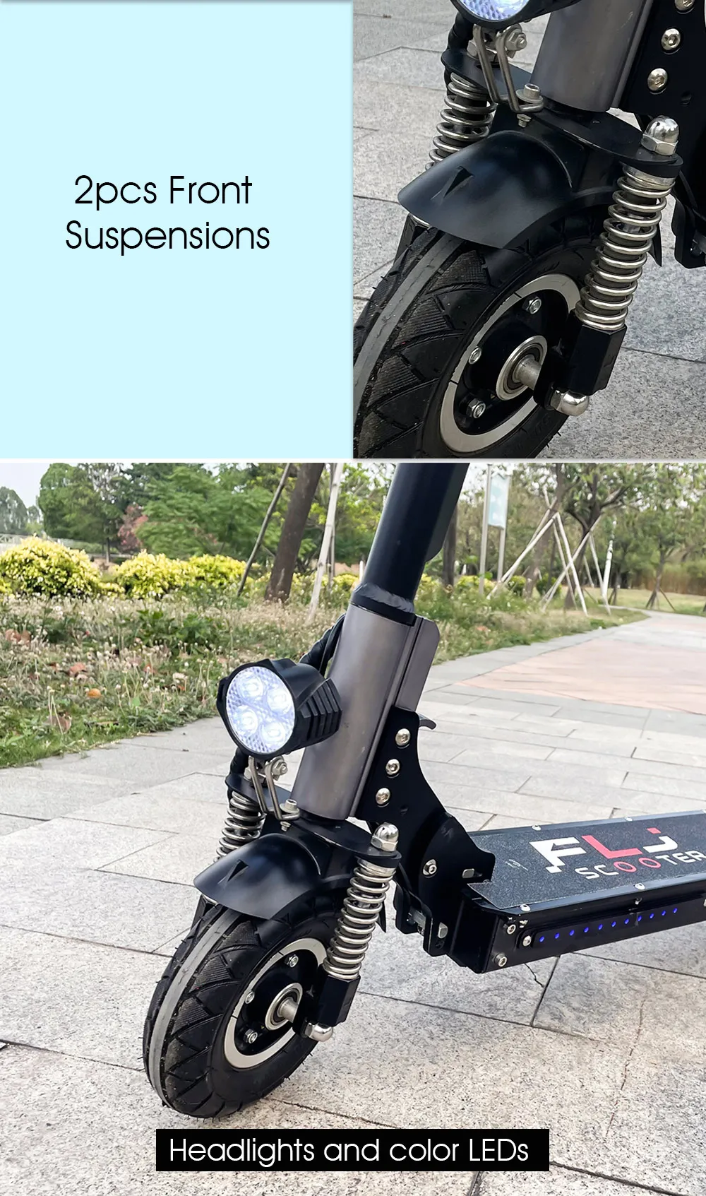 --With 2pcs Suspensions --With 1 big Front LED light --With color LED(side lights) --With Turn signal