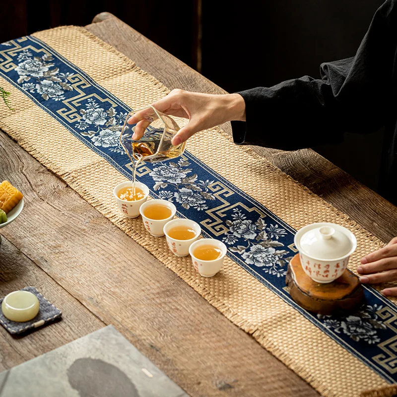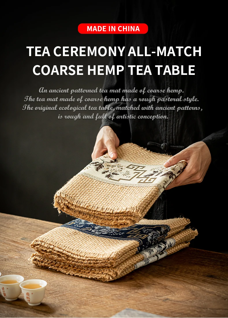 Натуральный коврик для чая из грубой конопли ручной работы, индивидуальный Настольный коврик, коврик из грубой конопли с вышивкой US $7.50