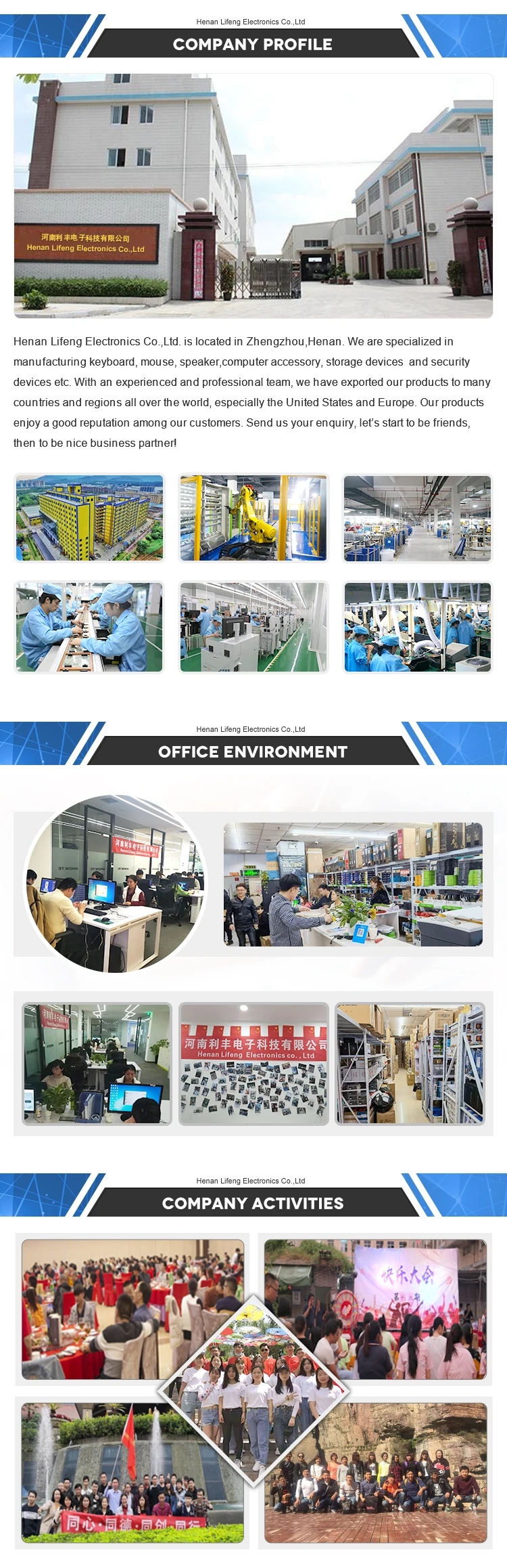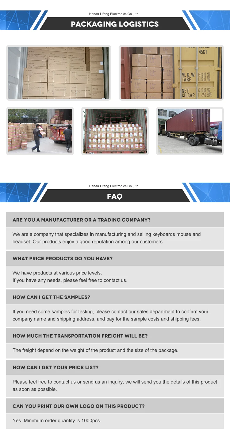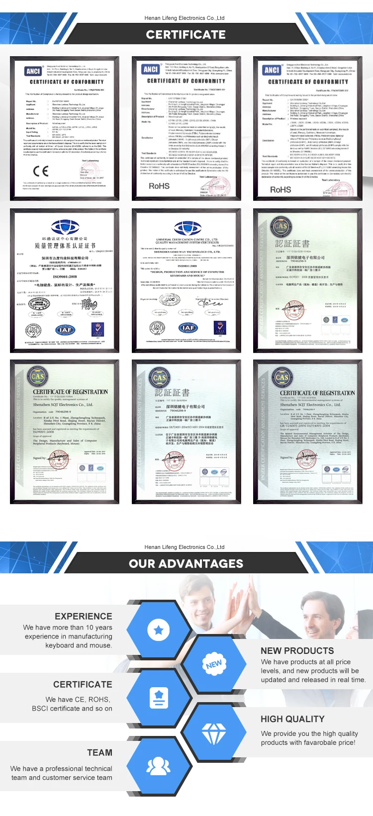 1. We have more than 10 years experience in manufacturing keyboard and mouse. 2. We have CE, ROHS, BSCI certificate and so on. 3. We have a professional technical team and customer service team provide you with 5 star pre-sales and after-sales service. 4.