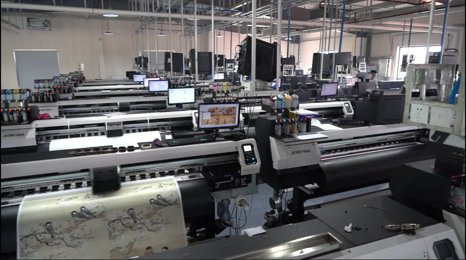 We have our own factory, more than 60,000 square meters of our own land, equipped with 100 Japanese imported inkjet printers, many large-scale sizing machines, high-speed machines, and over-speed machines to meet the different needs of customers.