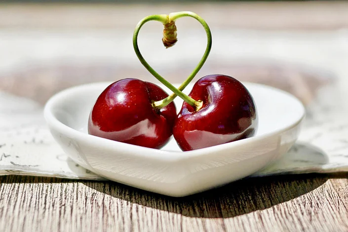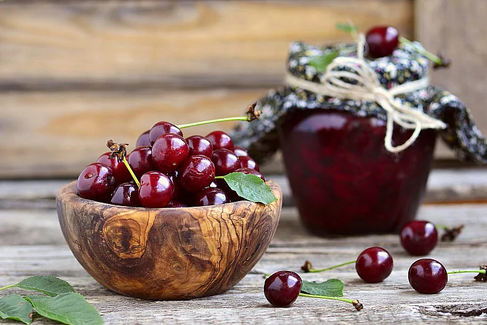 The benefits of cherries:- Promotes the removal of excess fluid from the body; - Strengthens tissues and blood vessels; - Promotes blood renewal; - Has a mild hypotensive effect; - Provides a mild anti-inflammatory effect; - Improves the functioning of the digestive system; - Strengthens the nervous system; - Promotes tissue regeneration of the musculoskeletal system; - Normalizes metabolic processes in the body; - Restores the balance of iron in the body.