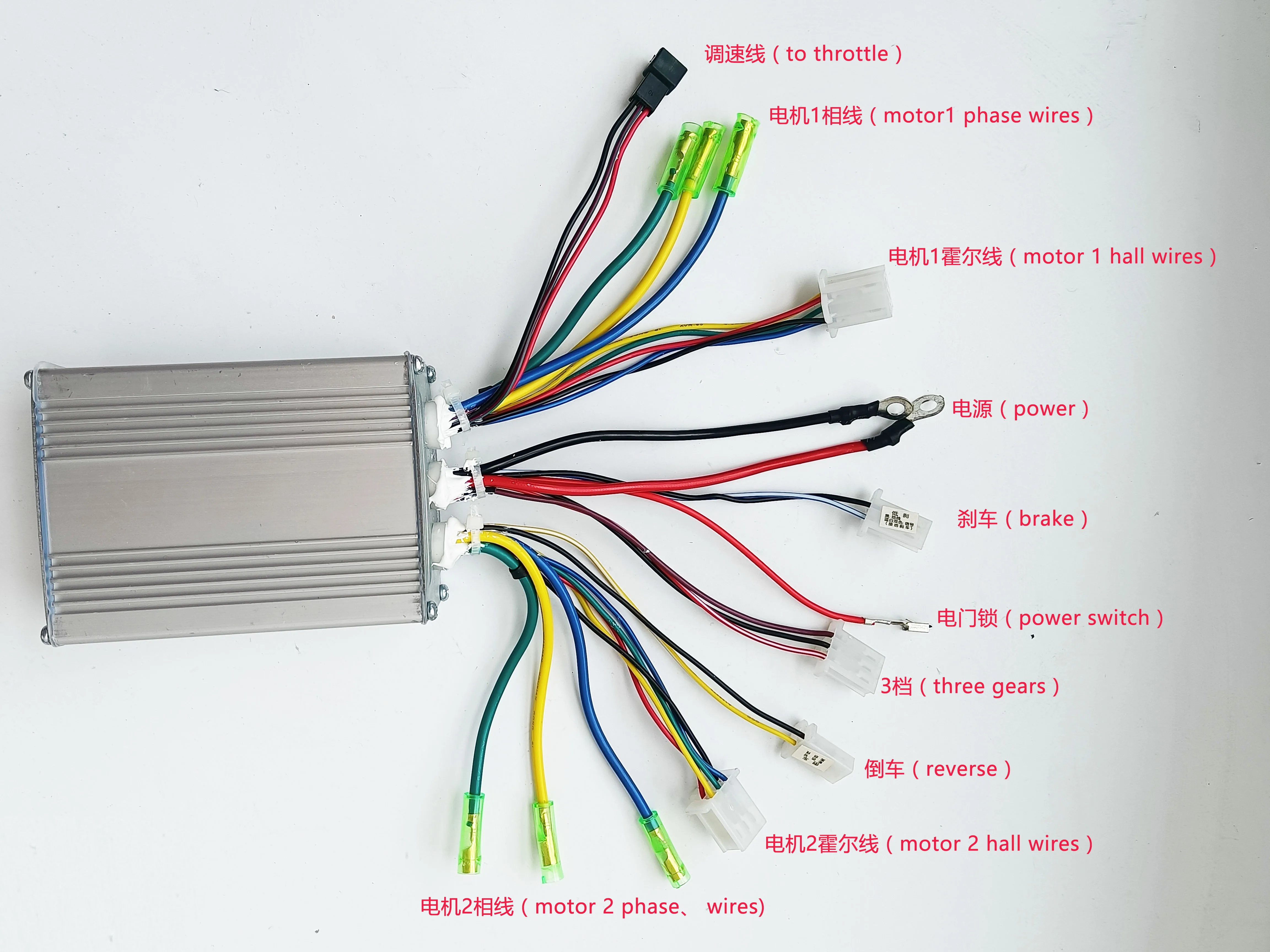 A controller which can control two brushless dc motors, and we call it dual drive controller. The controller can supply 48v or 36v max 25A current to each motors. At present, our dual drive controller is only ok to work with our electric wheelbarrow motors.