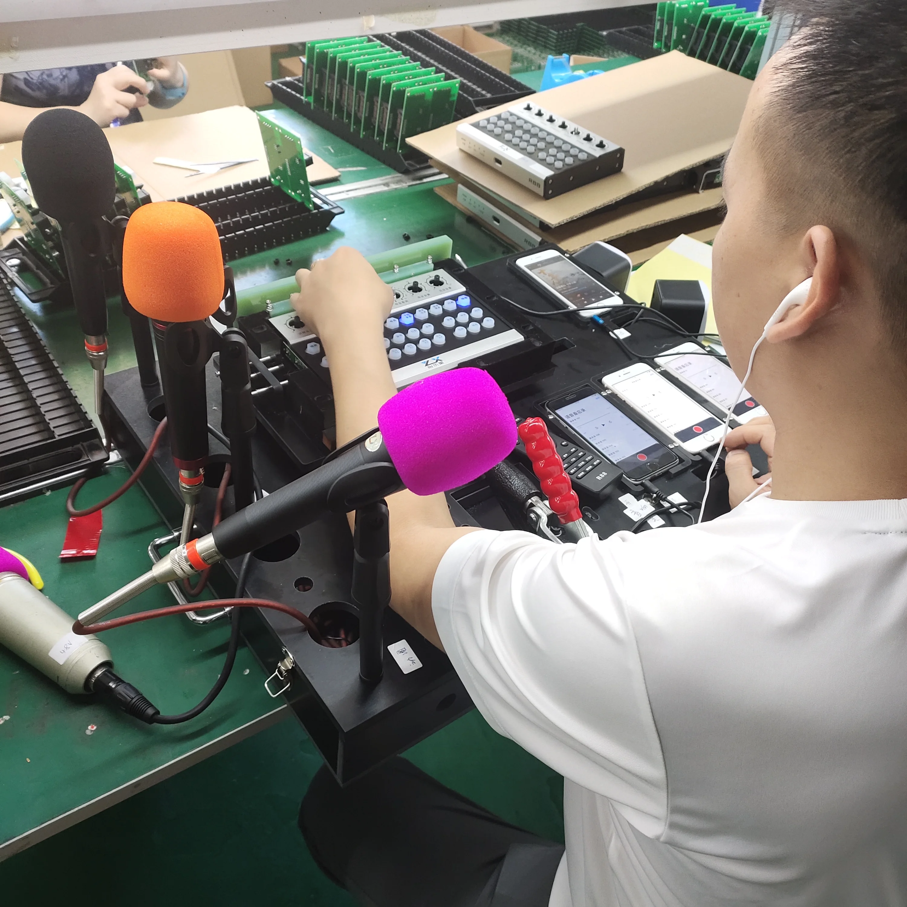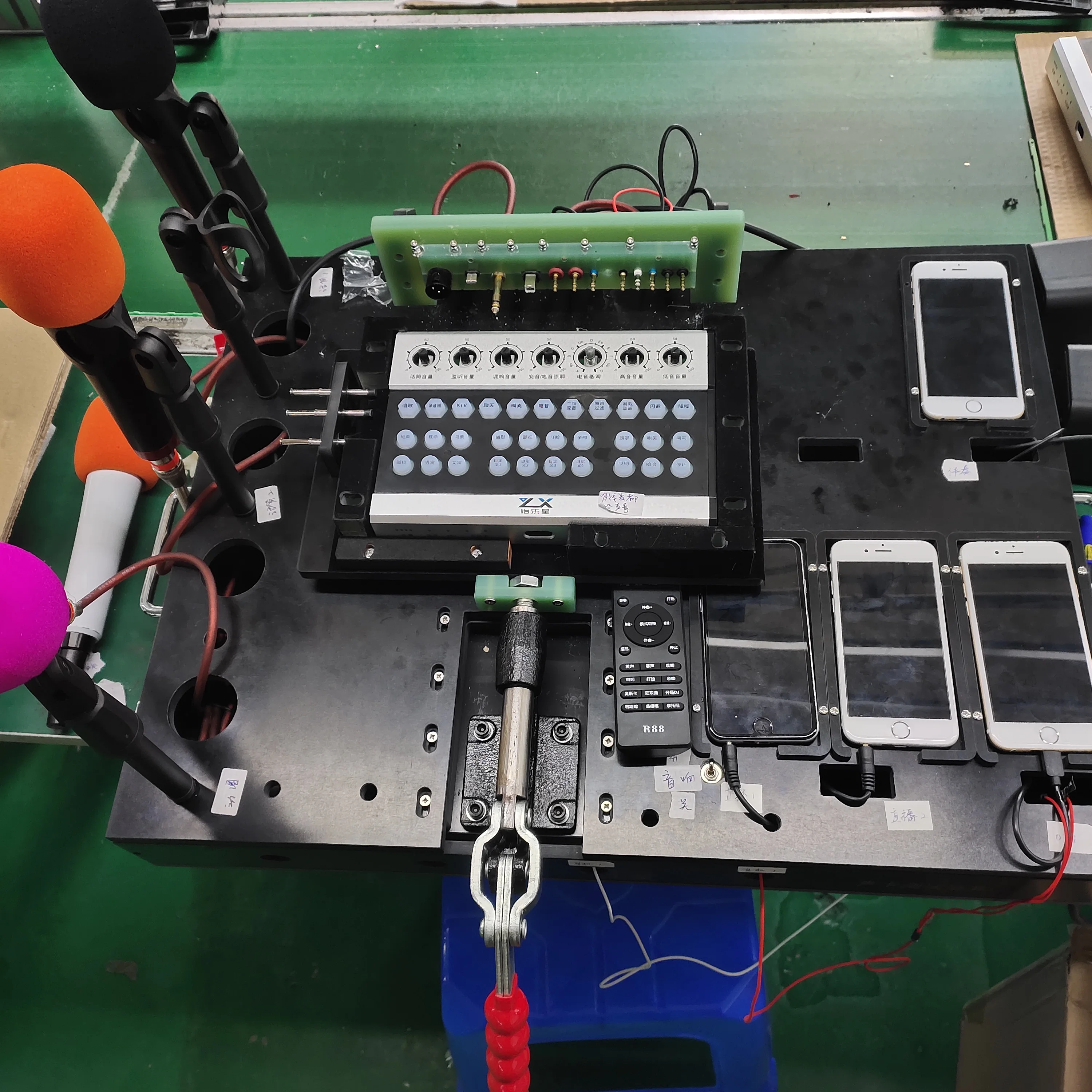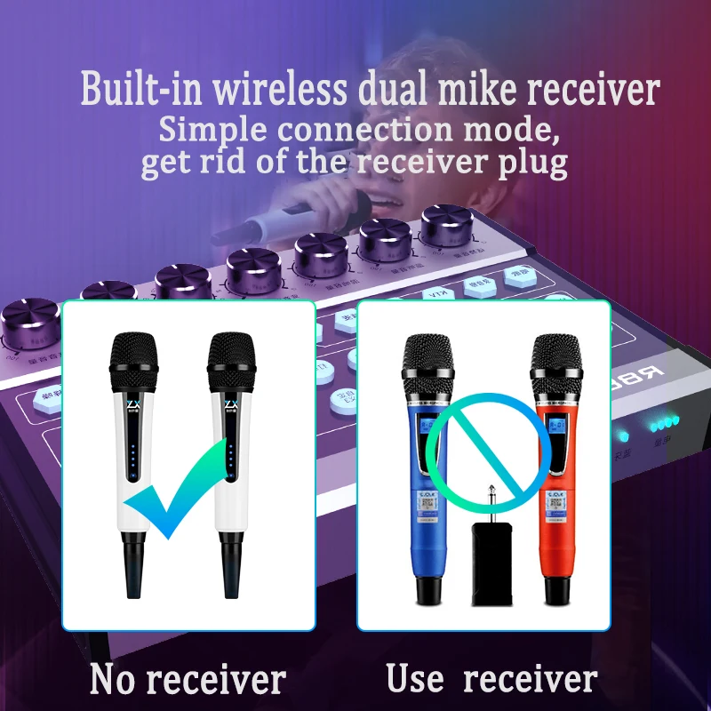 The R88 sound card has a built-in wireless receiver and can be connected for 2 Wireless microphone. If you want, we can upgrade it to 4 Wireless microphone。 |