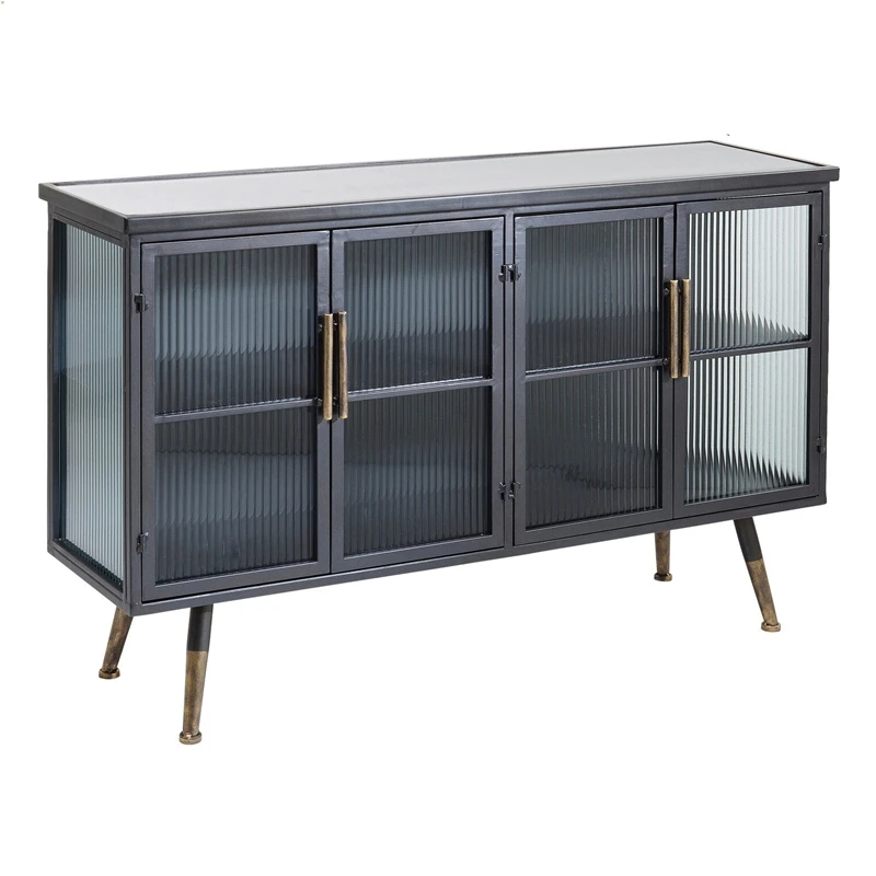 4 Doors Black Storage Furniture Industrial Metal Glass Modern Display Cabinet With Showcase
