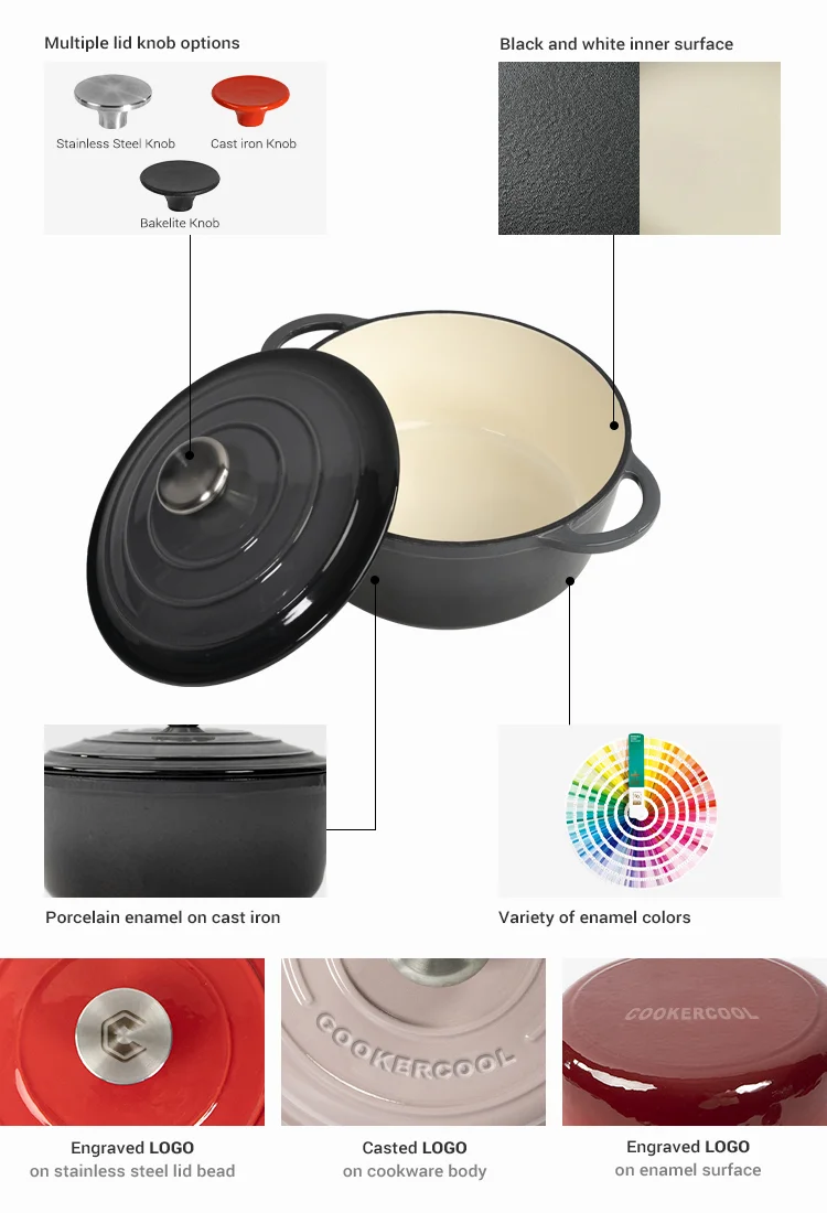 Cookercool casseroles grey color cast iron non stick enamel kitchen Soup Stock cooking pots sets | ||||||