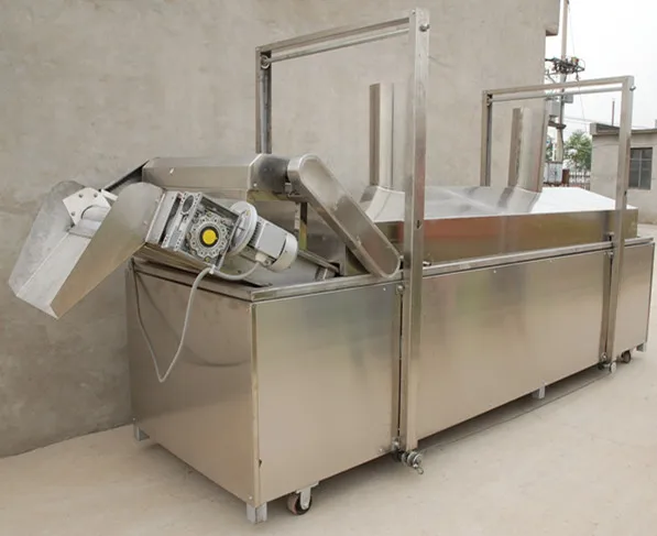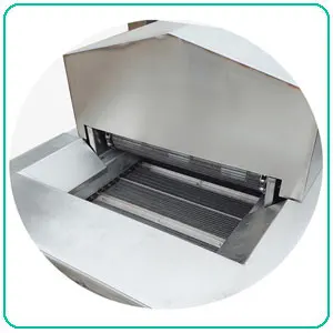 The machine body consists of oil tank, conveyor stand frame and cover, all of them are made of strong stainless steel. The conveyor is double layer structure which can help the material to be fried deeply and completely.