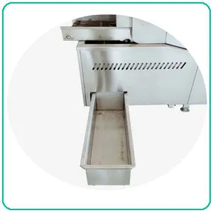 The side sludge scrapping system can remove the residue and sludge generated in the oil frying process out of the machine, so can keep the frying oil clean, and protect the color of the fried materials.