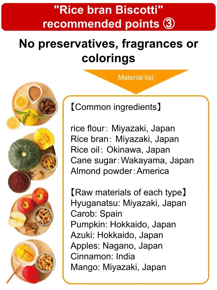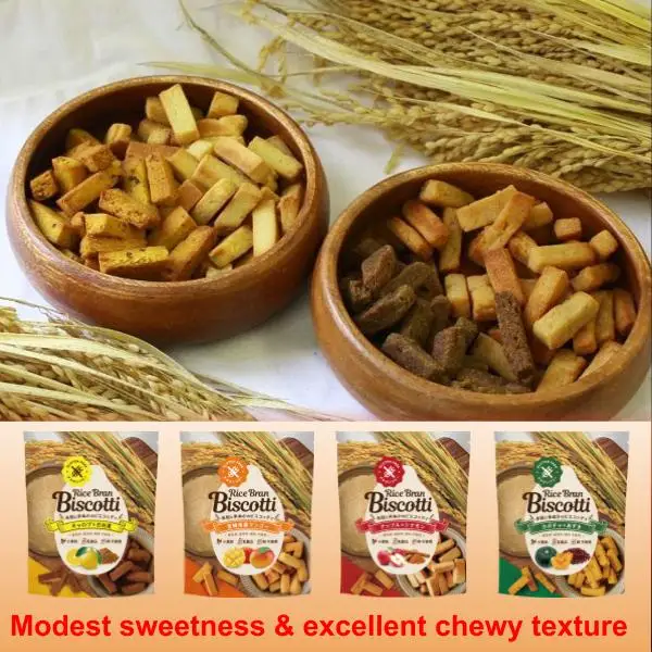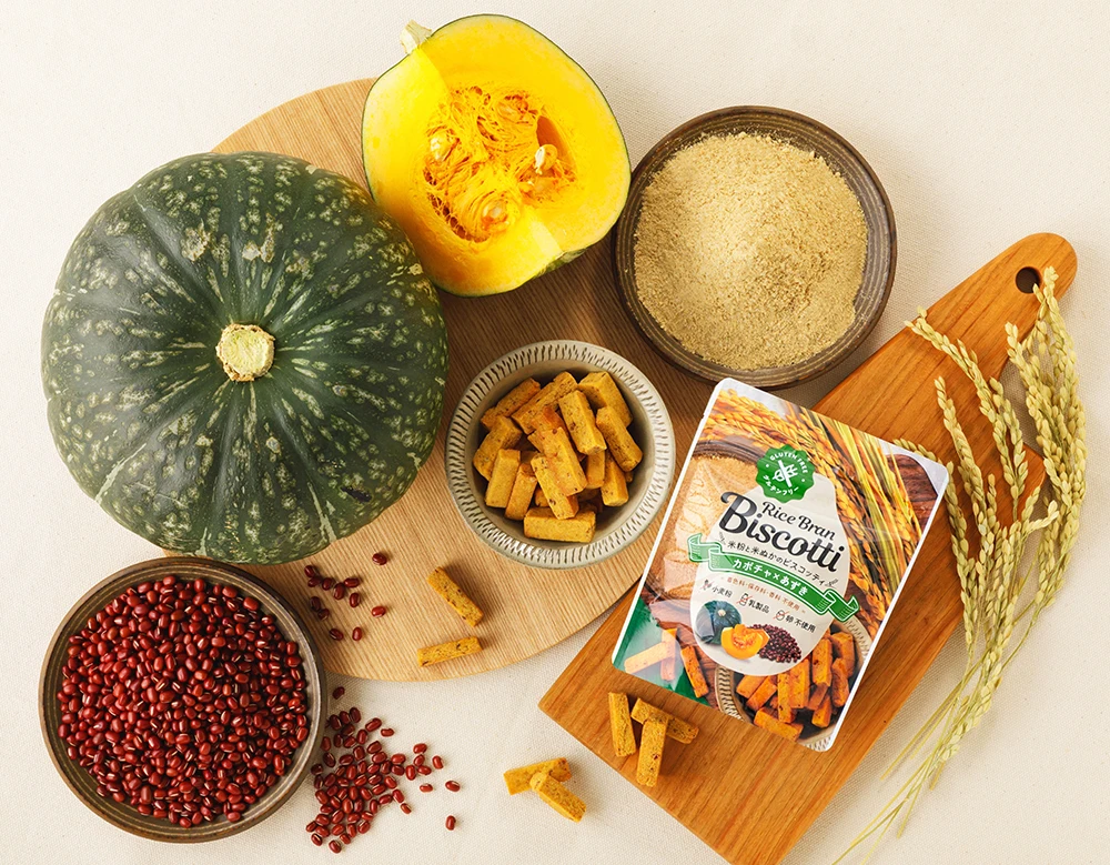 Snacks made with rice bran have a hard texture, so even a small amount can give you a feeling of fullness. Rice bran is rich in dietary fiber and minerals, so you can enjoy snacks while being conscious of your health.