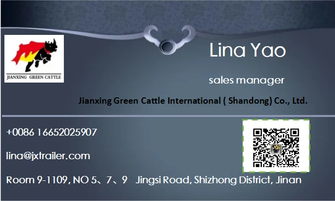 Jianxing Green Cattle International (Shandong) Co., Ltd. was established in 2021 in Jinan by Shandong Yuncheng Jianxing Special Vehicle Manufacturing Co., Ltd. Our company is located in Wanda Plaza in the Jingsi Road in the center of Jinan City. At present ,the company mainly sells container flat semi trailer, container transport vehicle, semi dump truck, various series semi trailer,full trailer, van, car transport vehicle manufactured by Shandong Yuncheng Jianxing Special Vehicle Manufacturing Co., Ltd. There are more than 40 kinds of products and the weight of vehicles from 8 to 120 tons. In addition, Jianxing Green Cattle International (Shandong) Co., Ltd. to undertake special vehicle modification design business. The company' s products are exported to all over