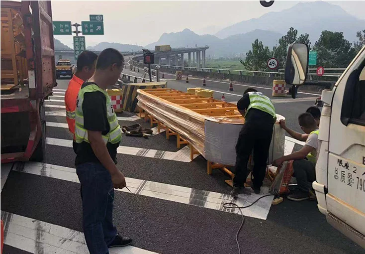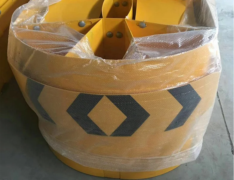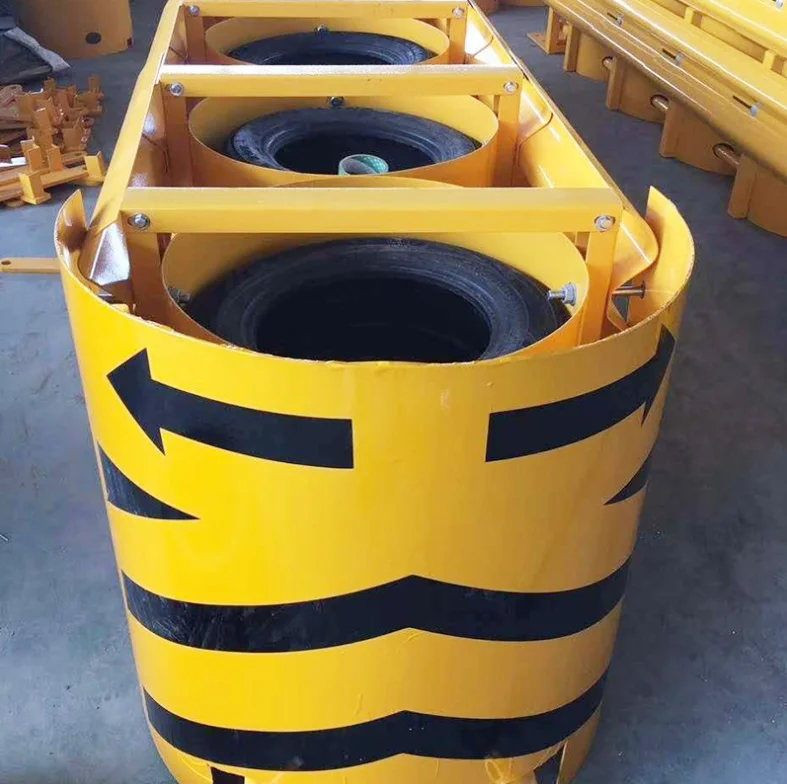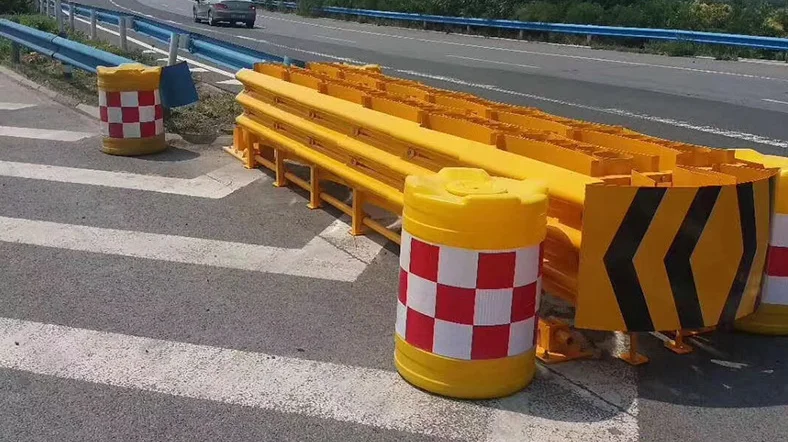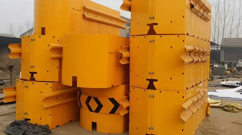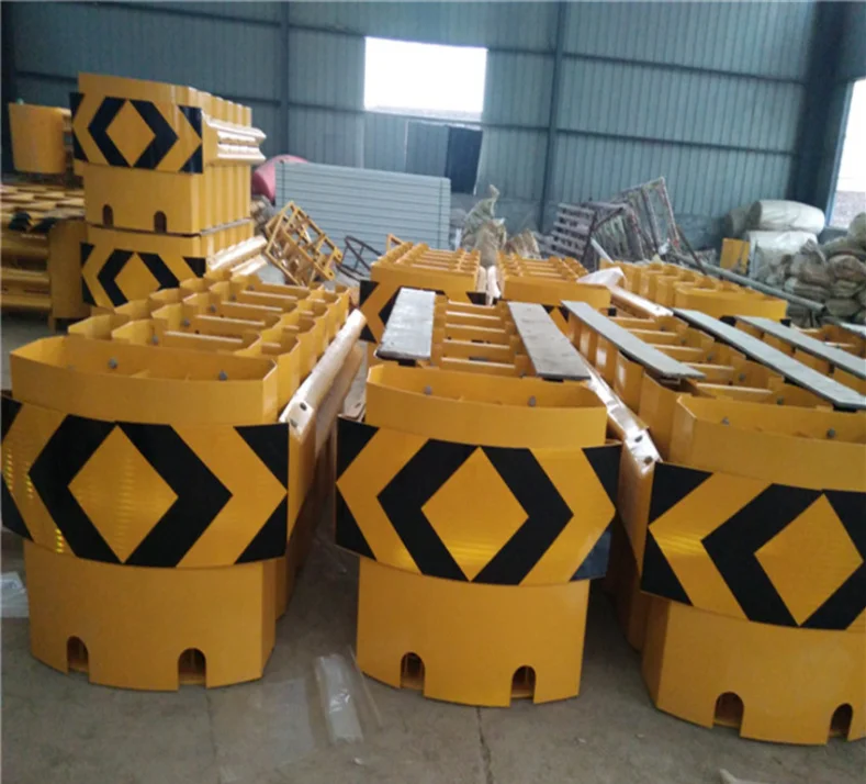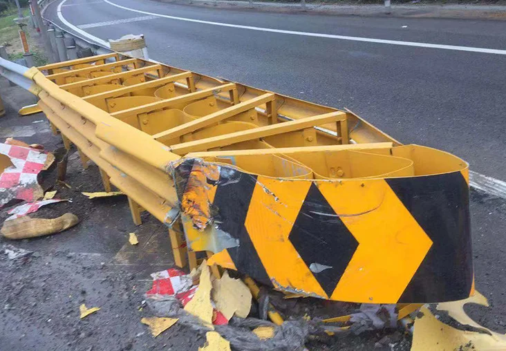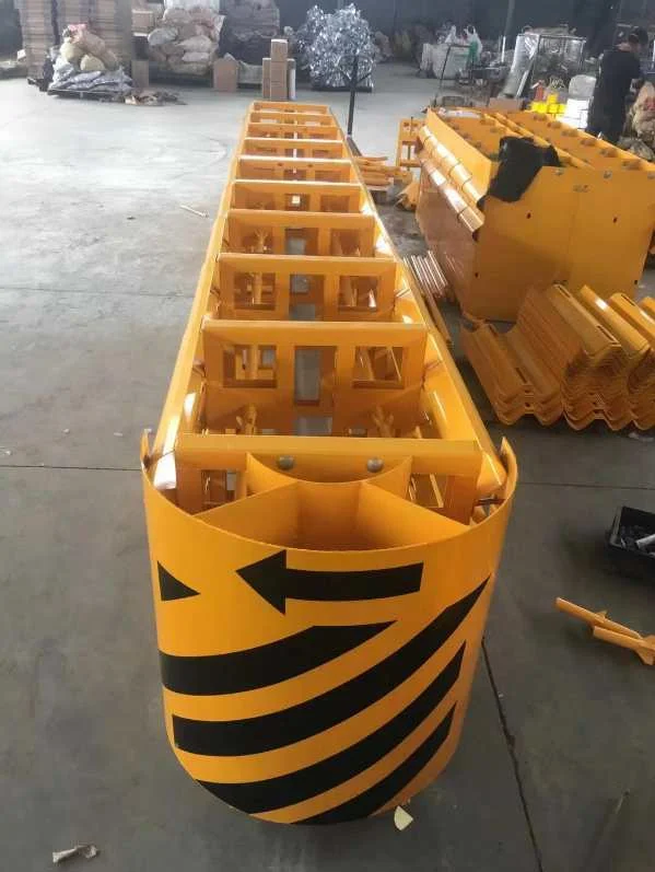 The principle of momentum conservation is generally composed of sand filling or water filling anti-collision cylinders (piers) of different masses arranged in a certain order. After a vehicle colliding with the anti-collision cushion, the momentum of the vehicle is transferred to the anti-collision cylinder in turn, which reduces the speed of the vehicle and the anti-collision cylinder in turn, and finally makes the speed of the vehicle lower than 15km/h.