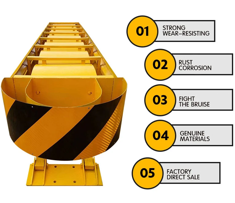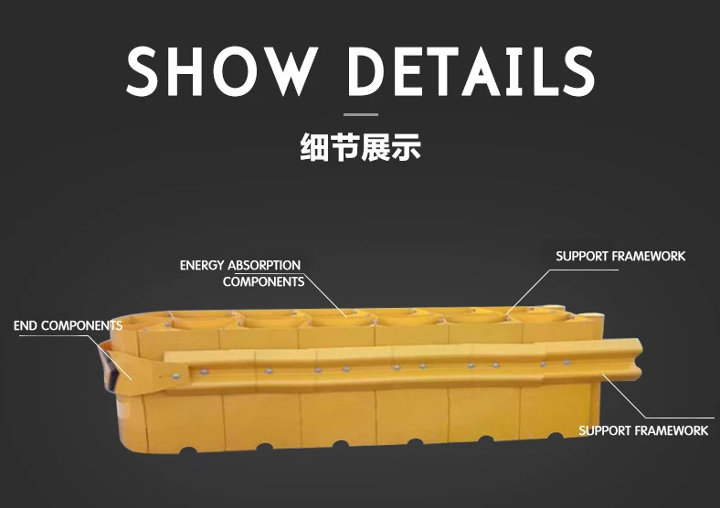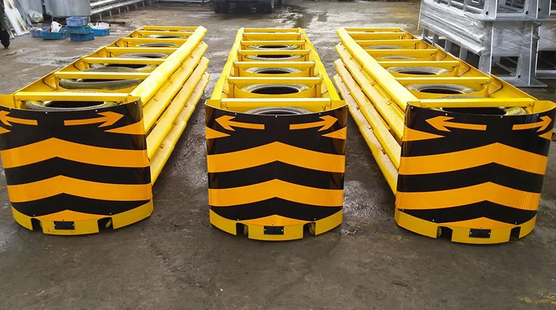 The structure of the cushion Kinetic energy principle anti-collision pad is generally composed of the end, energy absorbing material, both sides of the beam, diaphragm and back support. After a vehicle collides with the anti-collision pad, it absorbs the energy of the colliding vehicle through the deformation of the end part and energy absorbing material, and the back support is used to resist the impact force of the vehicle.