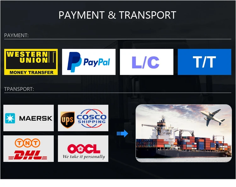 A: T/T 40% deposit,60% before shipment,L/C(L/C 180 days Max.),Western Union,Paypal.
