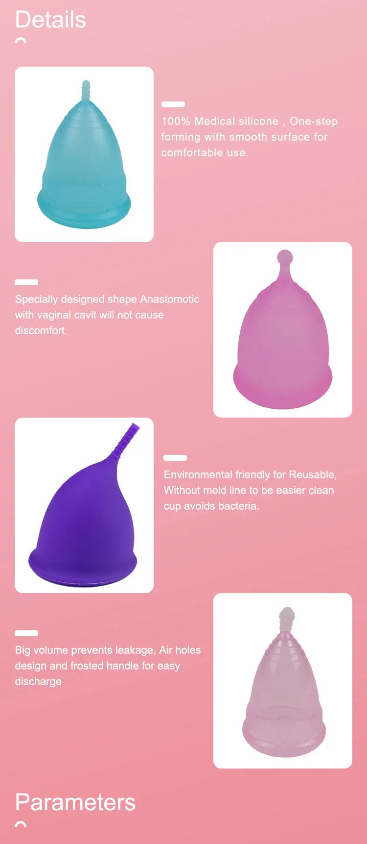 Eco friendly Reusable Healthcare Medical Grade Silicone Menstrual