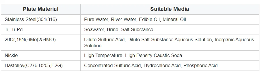 Plate Material | SS304,316L,Titanium,AlloyC276,Nickel, 254SMO,C2000 |