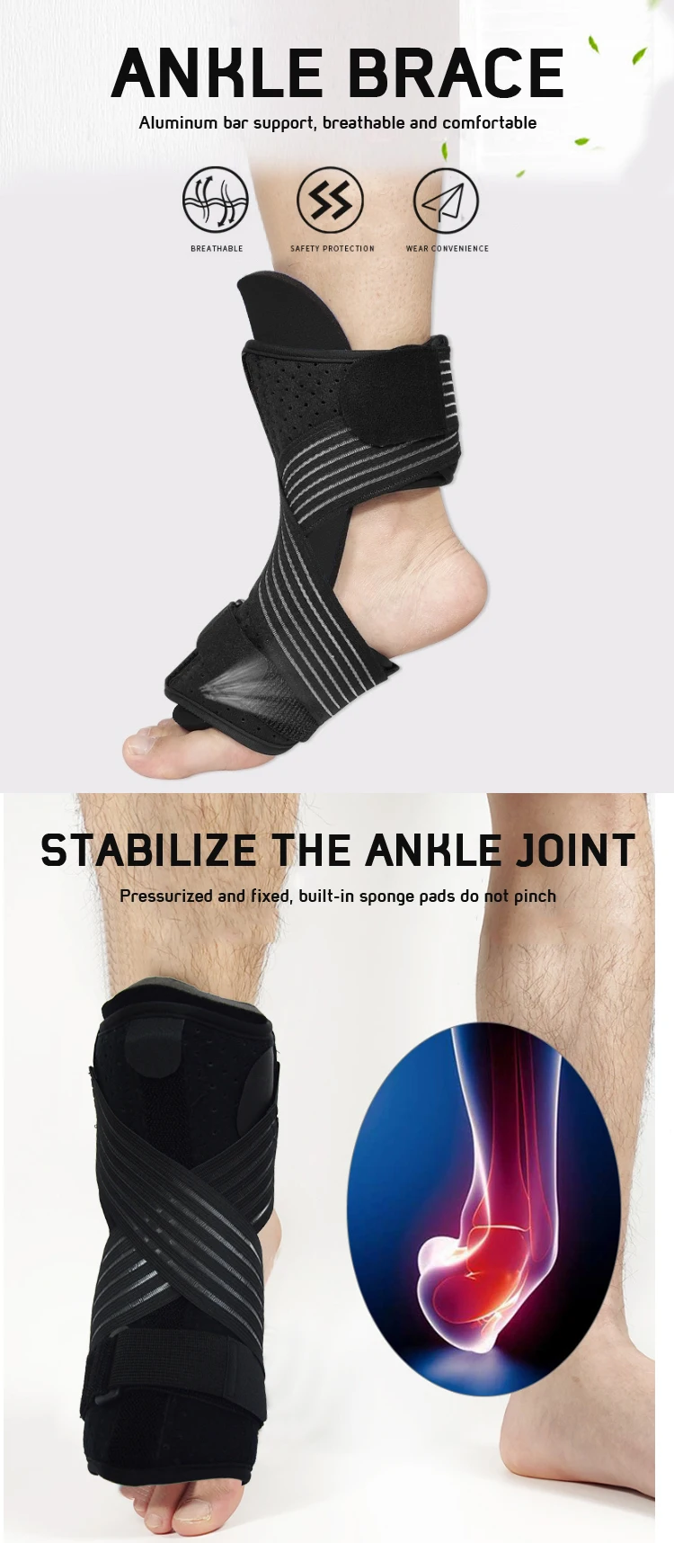 Feature | Breathable , Adjustable ,Elastic Ankle brace |