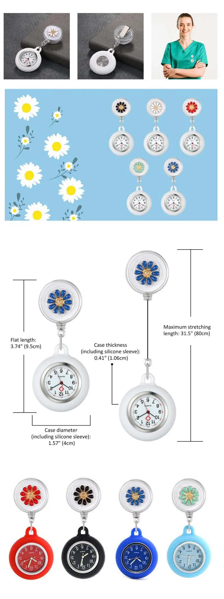 Custom Medical Quartz Pocket Breast Fob Silicon Nurse Watches