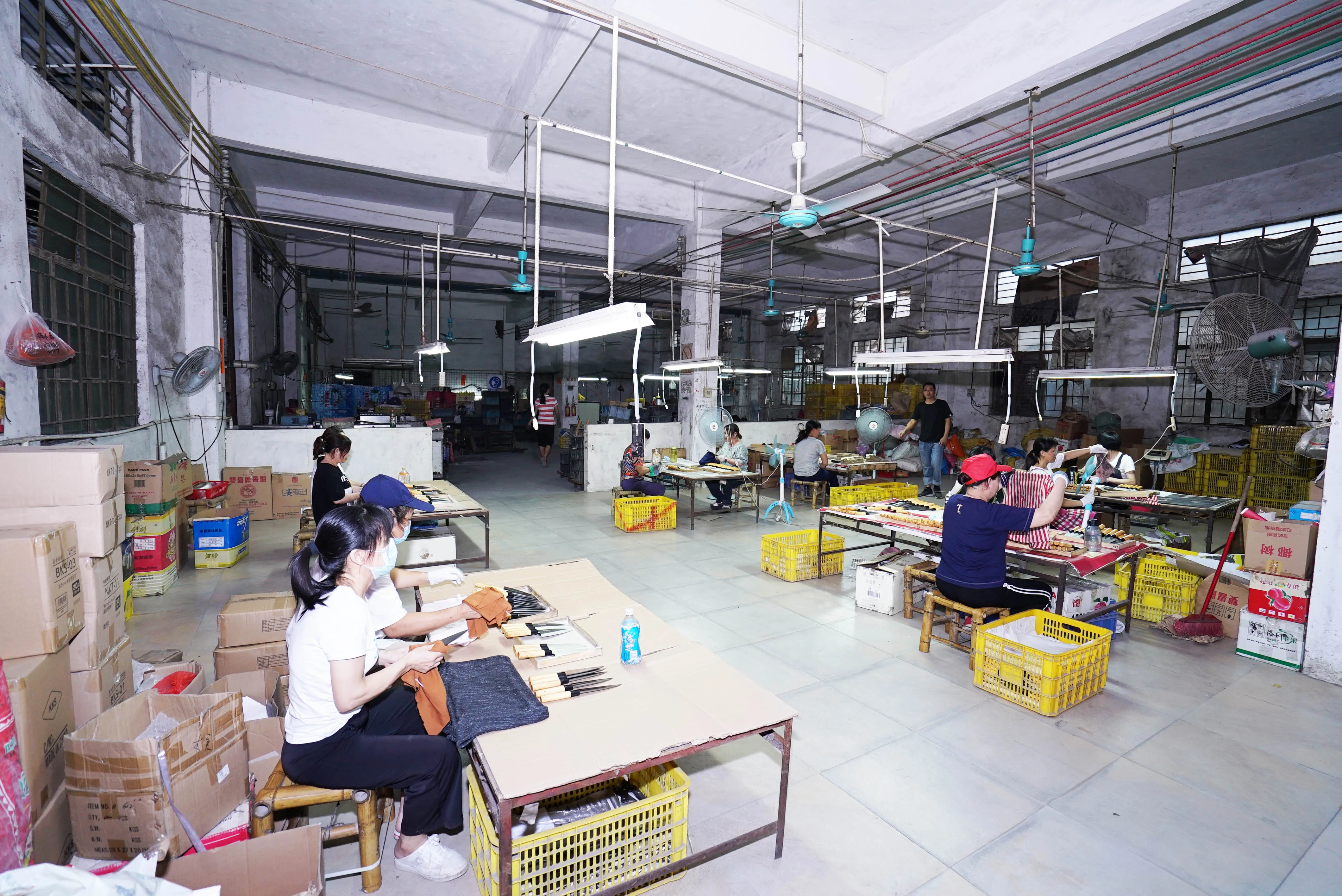 Our factory was founded in year 2010, with 2500 square meters space, about 100 workers in the peak season, mainly producing kitchen knives, such as chef knife, fruit knife, carving knife, fish knife, utility knife, vegetable knife, meat cleaver, bothing knife, paring knife, steak knife, butcher knife, santoku knife, sashimi knife and kitchen scissors.