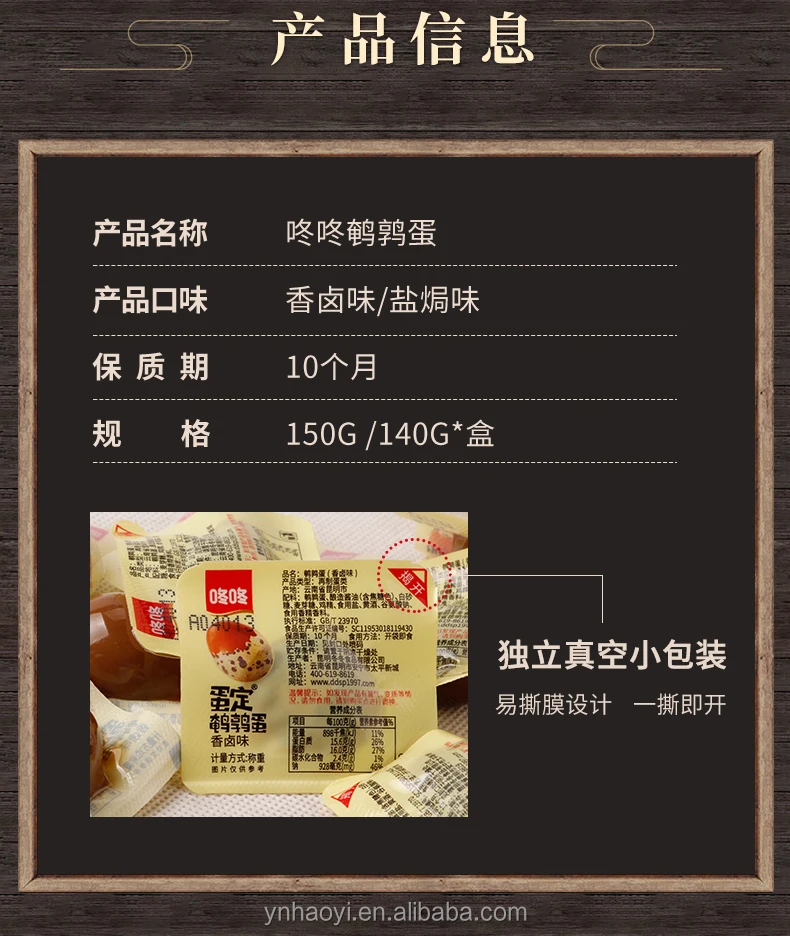 * Ingredients: quail egg, granulated sugar, maltose, chicken essence seasoning, edible salt, yellow rice wine, yeast extract,