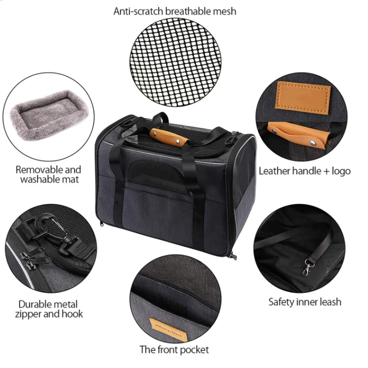 * This pet bag has a selection of wear-resistant fabrics.