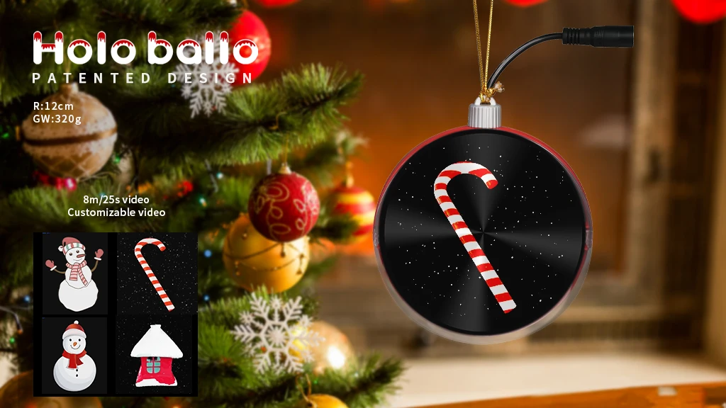 HoloBallo 12 см 3D Голограмма веер Рождественский шар с фиксированным видео светодиодный для внутреннего и наружного декора Рождественская