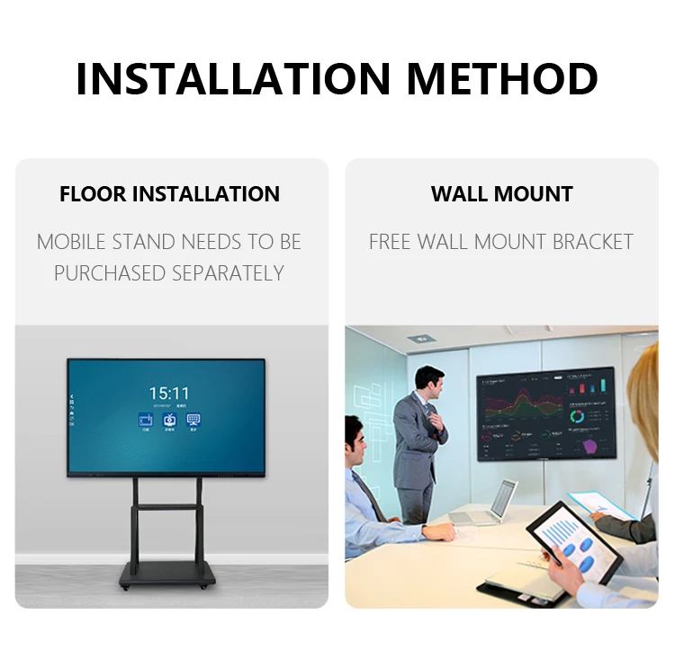 Accessories | Wall bracket/movable floor stand/pen/remote control/WIFI antenna | |||||