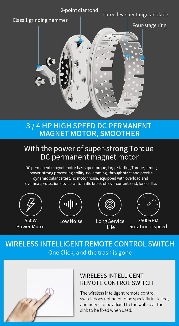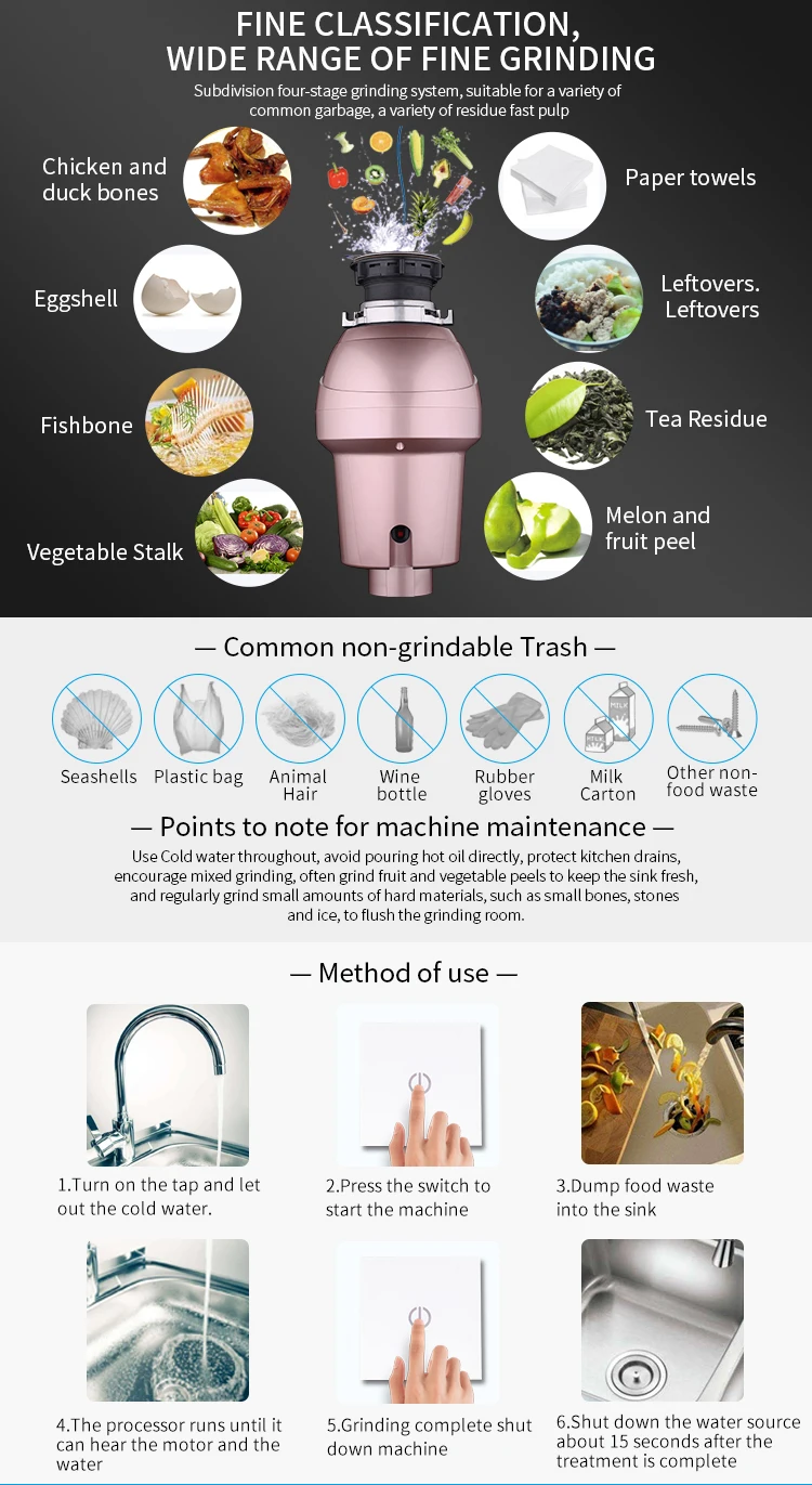 Бытовая одноразовая прочная шлифовальная машина для раковины, мельница для удаления пищевых отходов US $125.00-$132.00