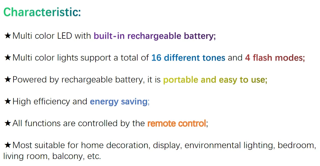 LED color | 4 main RGB colors (red, green, blue and white). 16 colors |