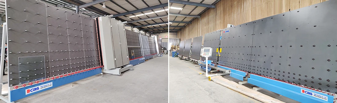 2. The machine adopts horizontal structure, put the flat glass on the transfer roller, through entrance part—- washing part (two-stage washing) —- water absorption part—- drying part (with 22kw drying machine) —- exit part. Equip the Pneumatic lift sliding table can transfer speediness.