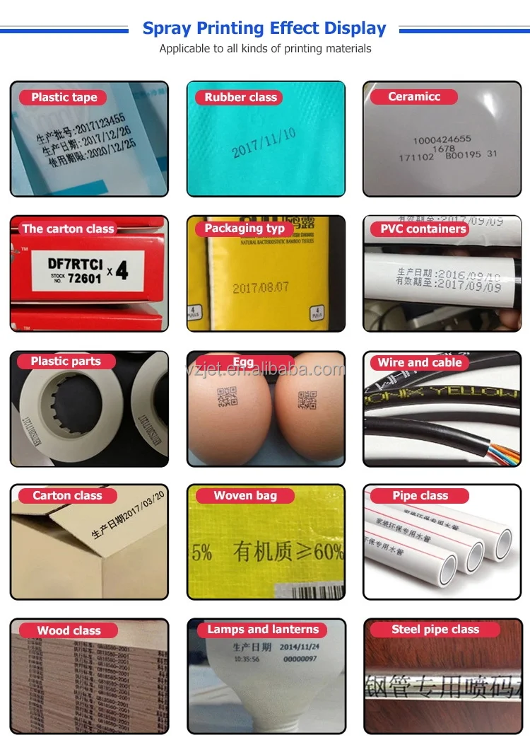 Printing material | Board, carton, stone, pipe, cable, metal, plastic product, electronic, the fiber board, light steel keel, aluminum foil, etc. |