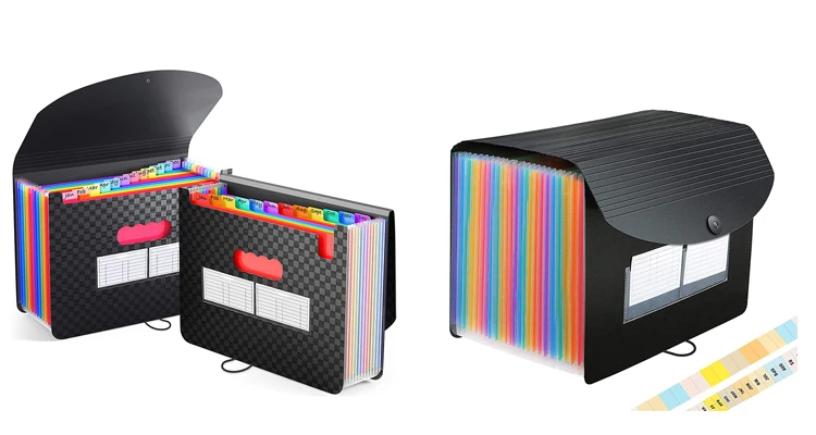 * Handy organization & Easy lookup: Expandable file folder has 24 pockets designed for keeping our paperwork organized.Accurately classified storage in the specific color slot and labeled with tabs, so it is easier to find the papers what is needed.