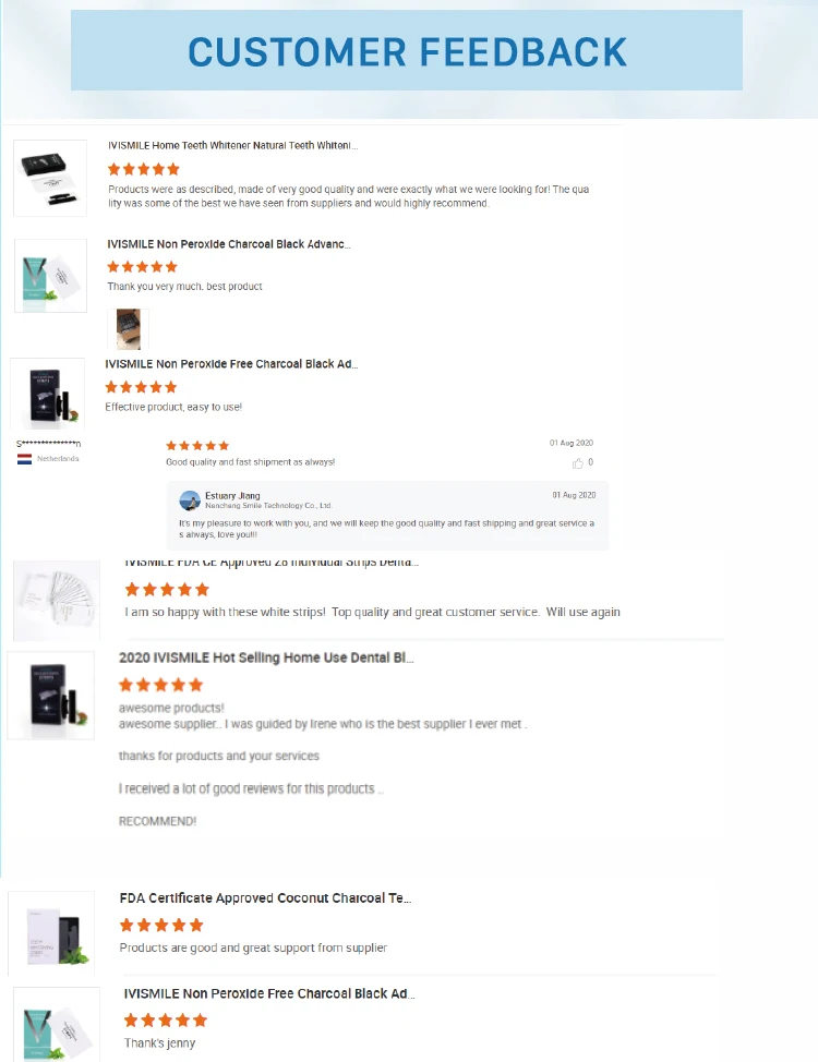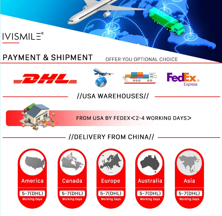 Delivery time | 3-5 days for IVISMILE strips, 12-15 days for custom logo |