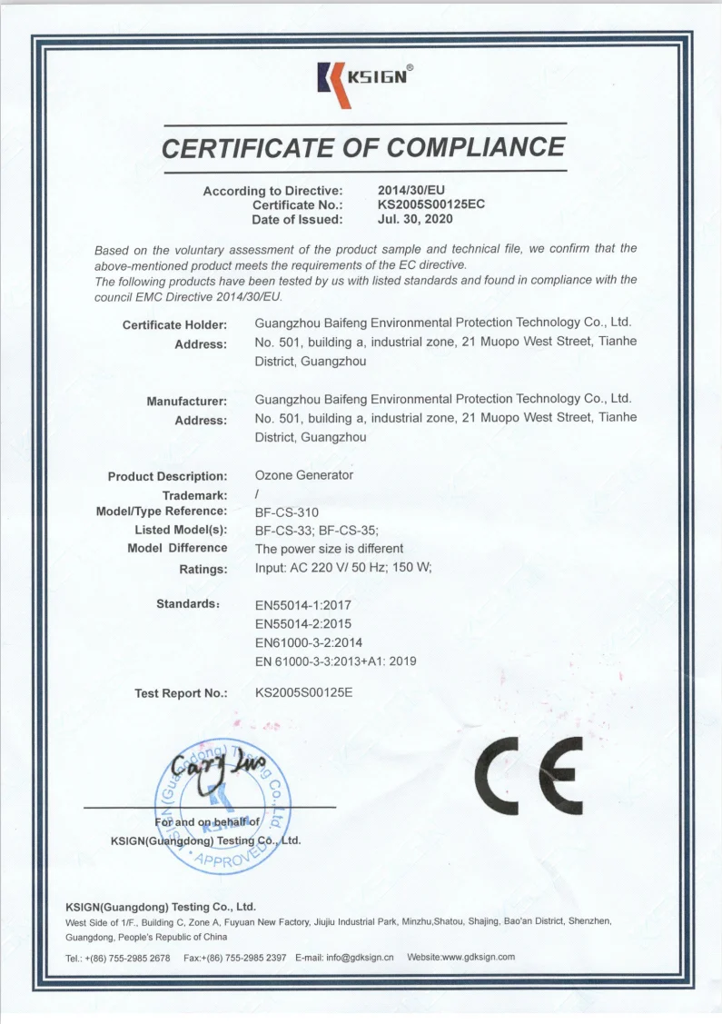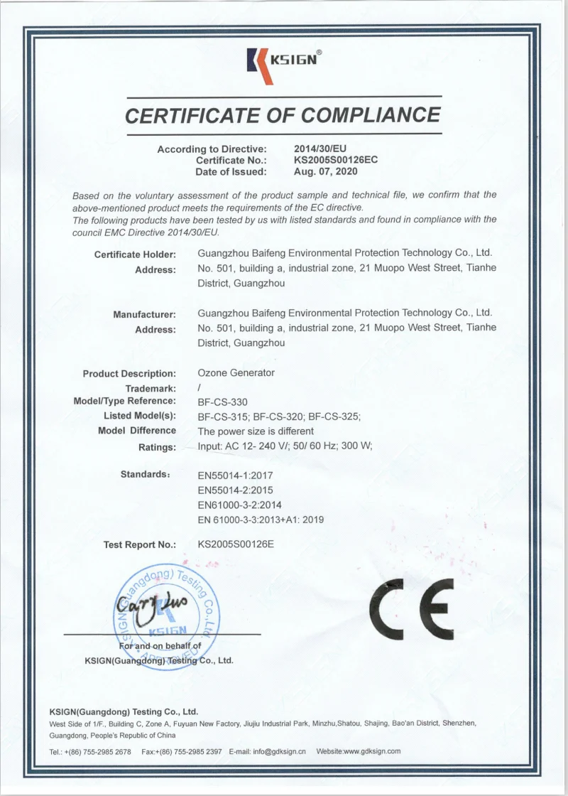 ozone concentration | 20-30mg/L |