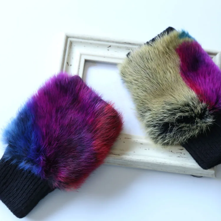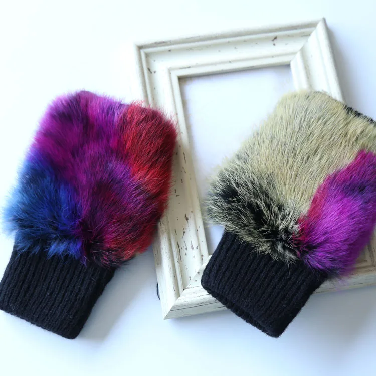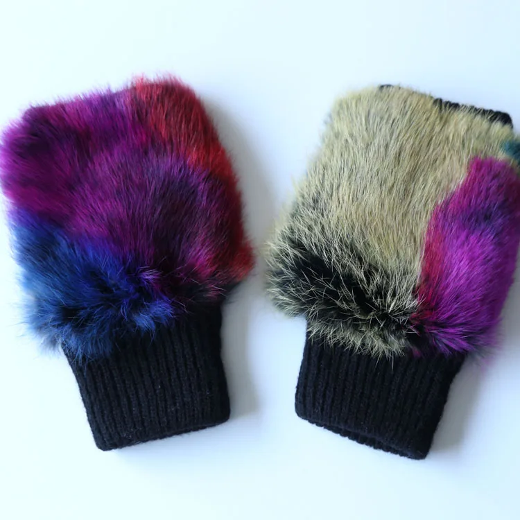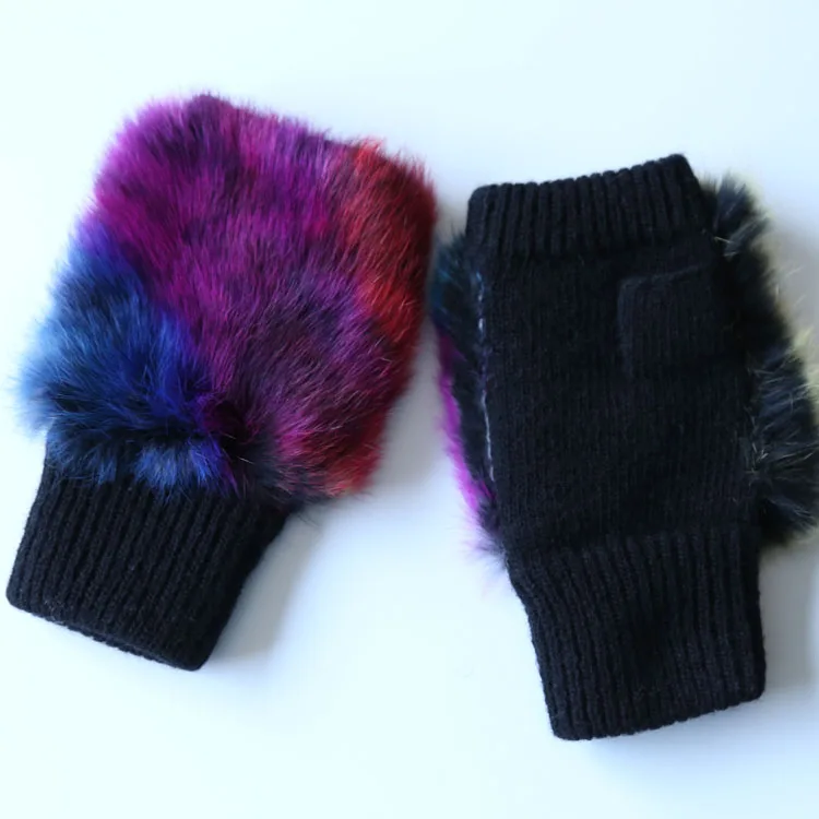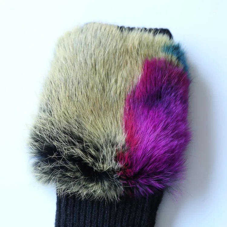 Name | Knitted Ski Glove Colorful Black Rabbit Fur Fingerless Hard Knuckle Wholesale Winter Glove |