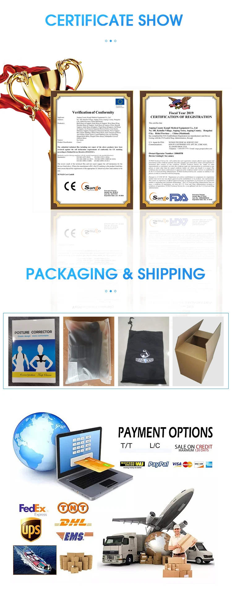 Our main products includes Back,Knee,Elbow,Neck,Ankle,Foot support,Fitness Products,Maternity&Abdomen Supports,Hot&Cold Therapy.