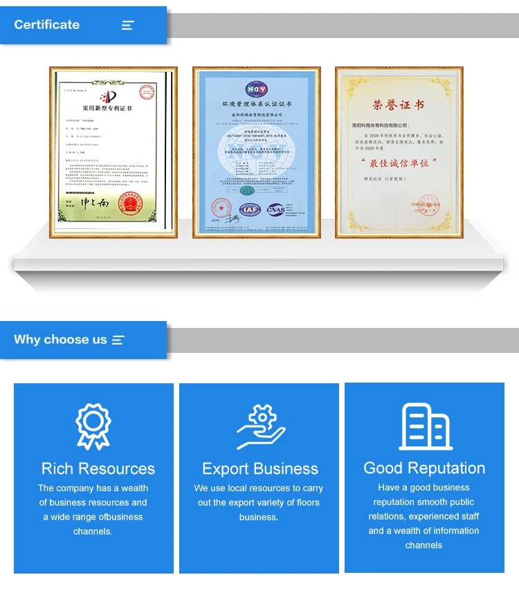 Luoyang Kepao Sports Technology Co., Ltd. was established in 2014. It is a scientific and technological sports service company integrating R&D, production, sales and construction. It has obtained 6 national utility model patents and 2 national invention patents. The company independently develops and produces new outdoor flooring.