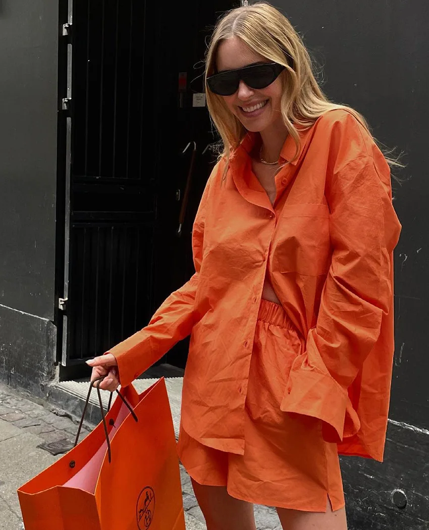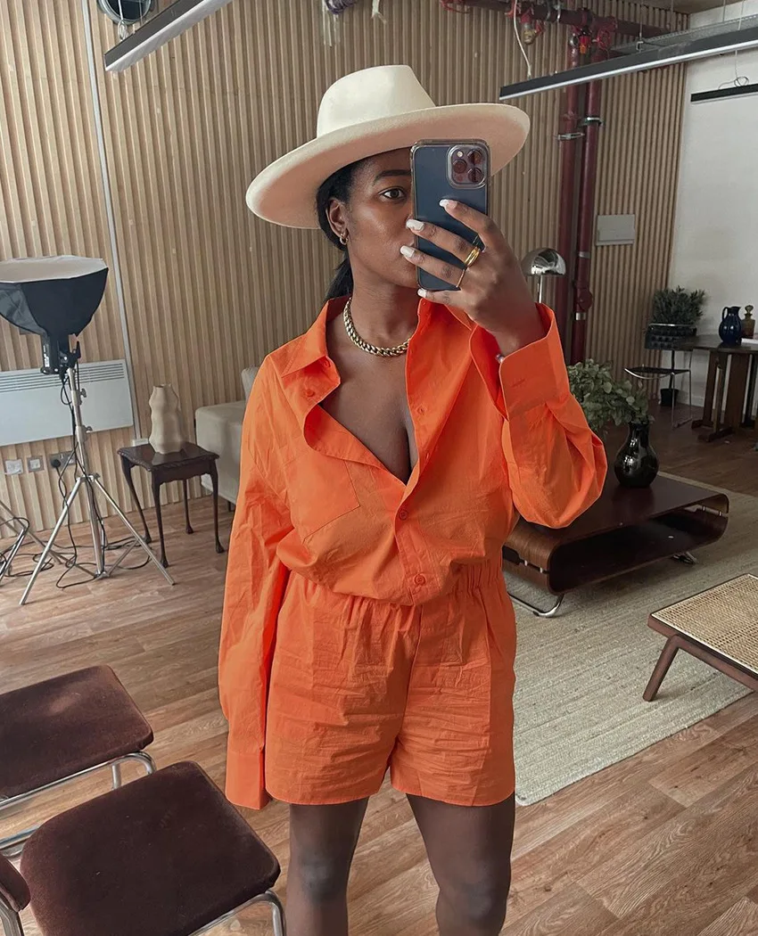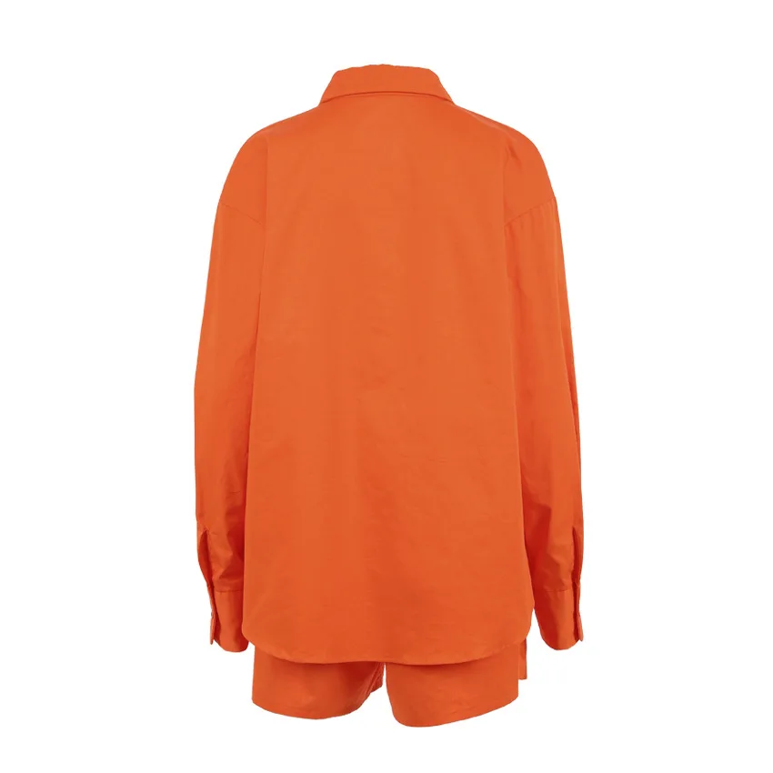 Новый осенний оранжевый хлопковый свитшот с логотипом на заказ блузка отложным воротником и широкие шорты элегантный комплект из двух предметов спортивные
