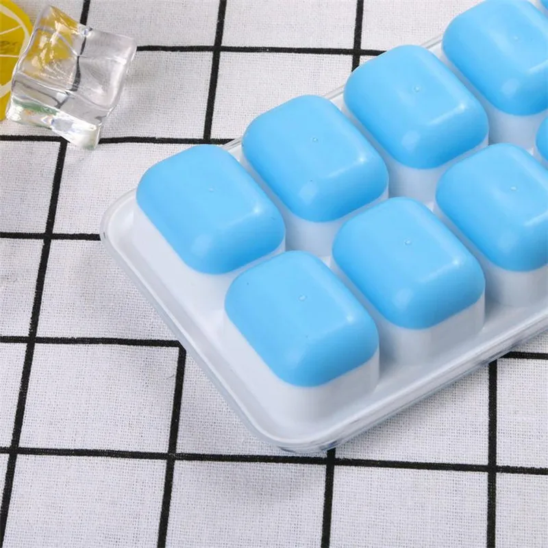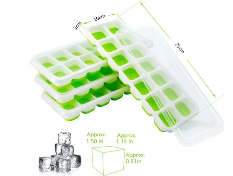 1Pc Covered Ice Cube Tray Set With 14 Ice Cubes Molds Flexible Rubber Plastic Stackable Green