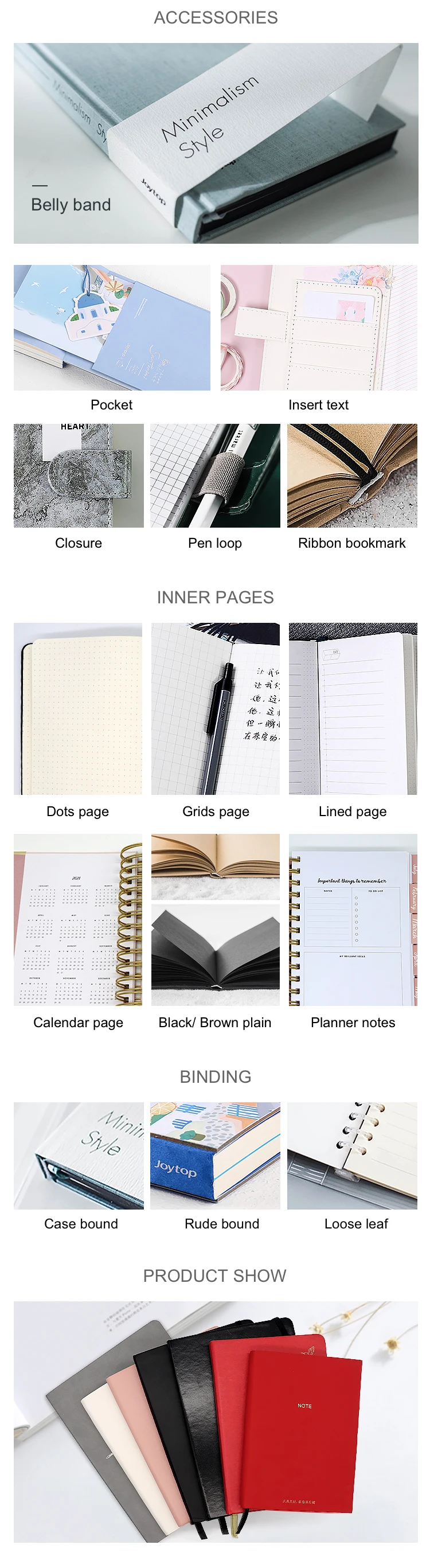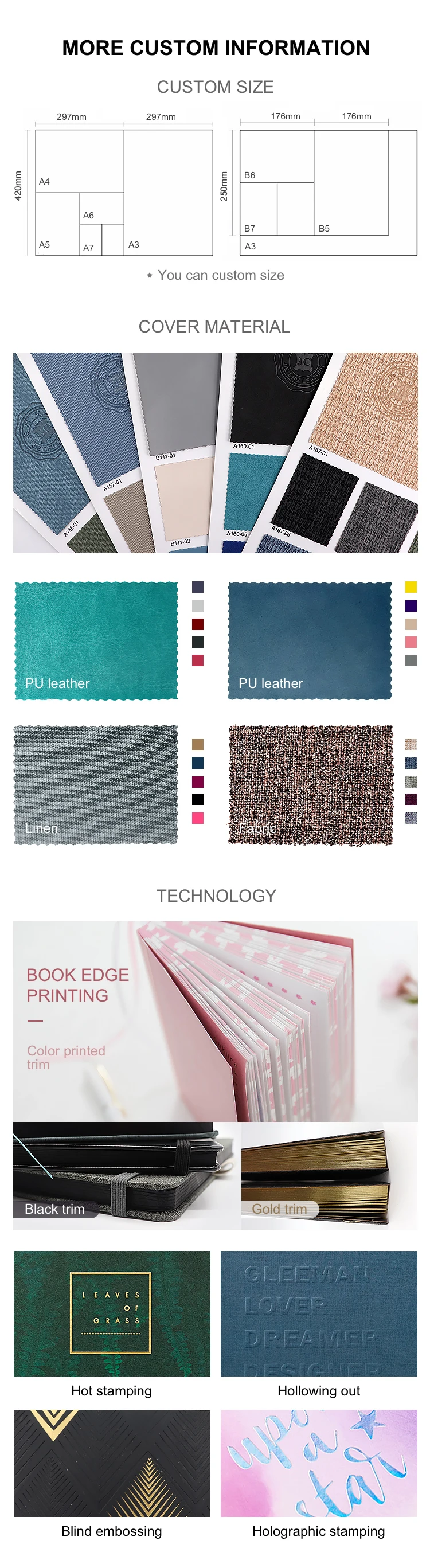 Cover material | Paper, PU leather, plastic, cloth, etc. | |